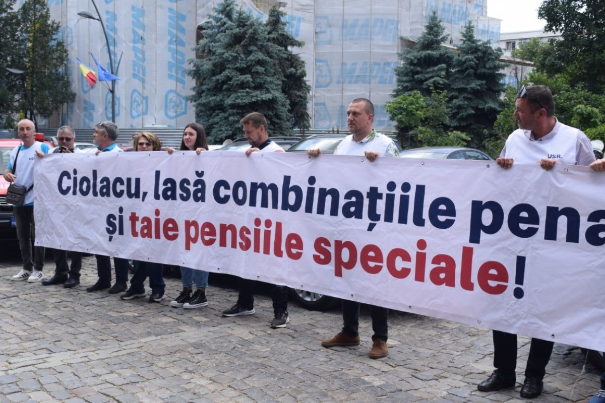 „De fapt nu este un protest, profităm de momentul învestirii noului Guvern să atragem atenția asupra eliminării pensiilor speciale. Este un jalon din PNRR care până acum nu a fost îndeplinit, sunt în pericol banii din PNRR. Acești bani pot asigura realizarea mult doritei autostrăzi a Moldovei, spitale noi, școli moderne.