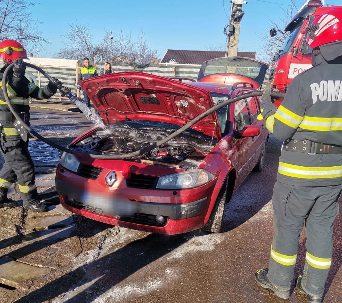 Aceștia au constatat faptul că ardea partea din față a mașinii și au acționat rapid astfel încât flăcările să nu se extindă.