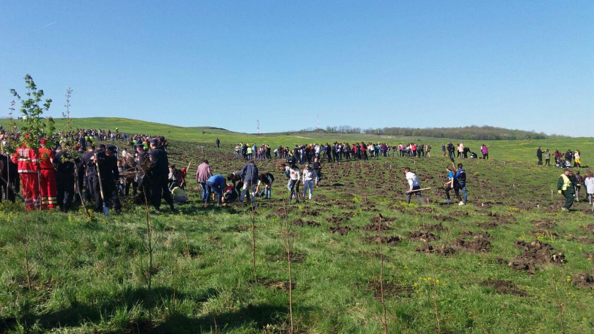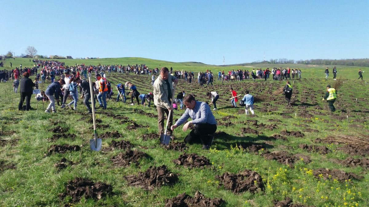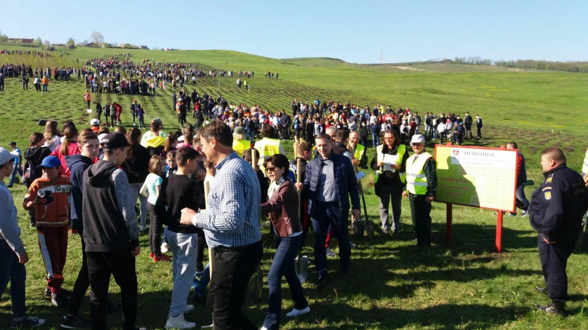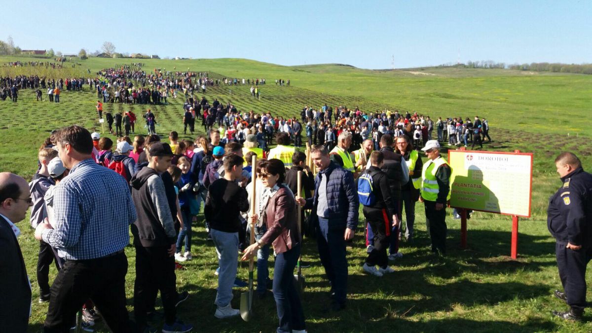 Peste 1.200 de persoane, adulți sau elevi s-au adunat pe Dealul Polonic din Dorohoi unde iau parte la una dintre cele mai impresionante acțiuni de plantare puieți.