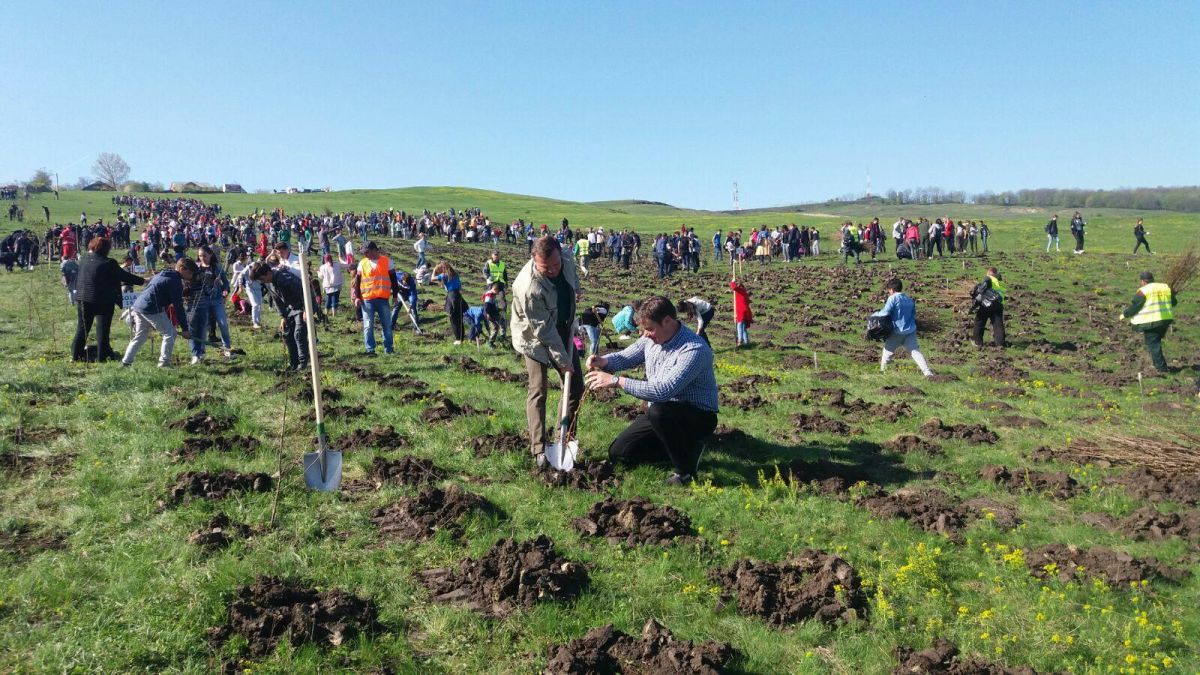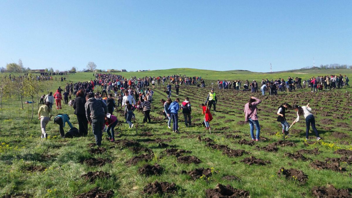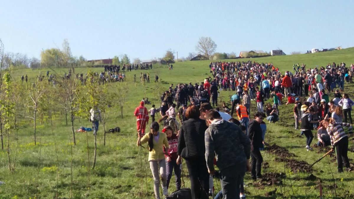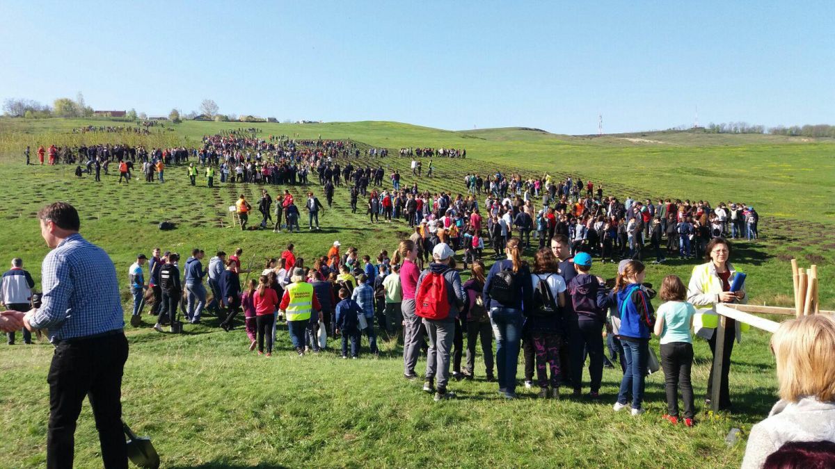 Peste 1.200 de persoane, adulți sau elevi s-au adunat pe Dealul Polonic din Dorohoi unde iau parte la una dintre cele mai impresionante acțiuni de plantare puieți.
