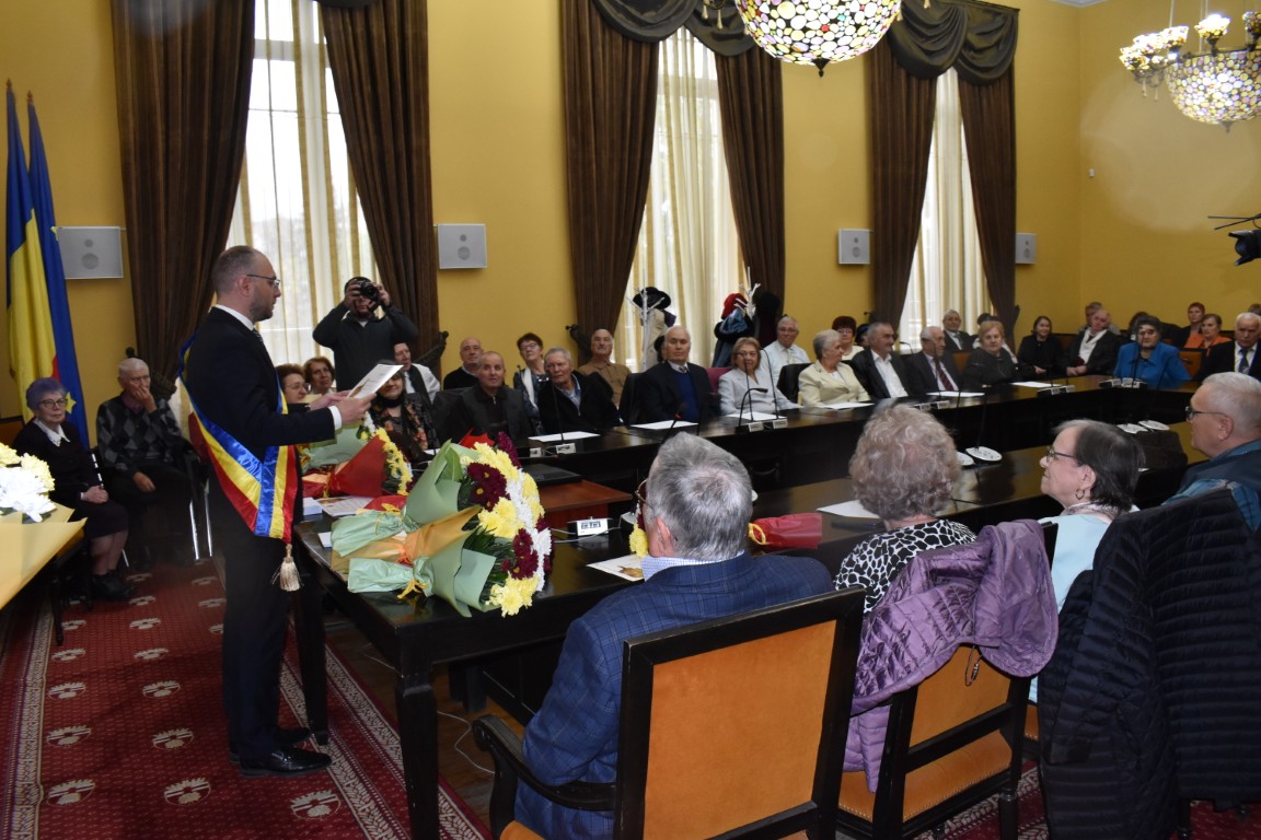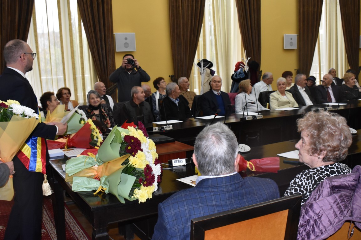 Zeci de cupluri de botoșăneni care au conviețuit împreună decenii la rând au fost felicitate astăzi în sala Mihai Eminescu a Primăriei.