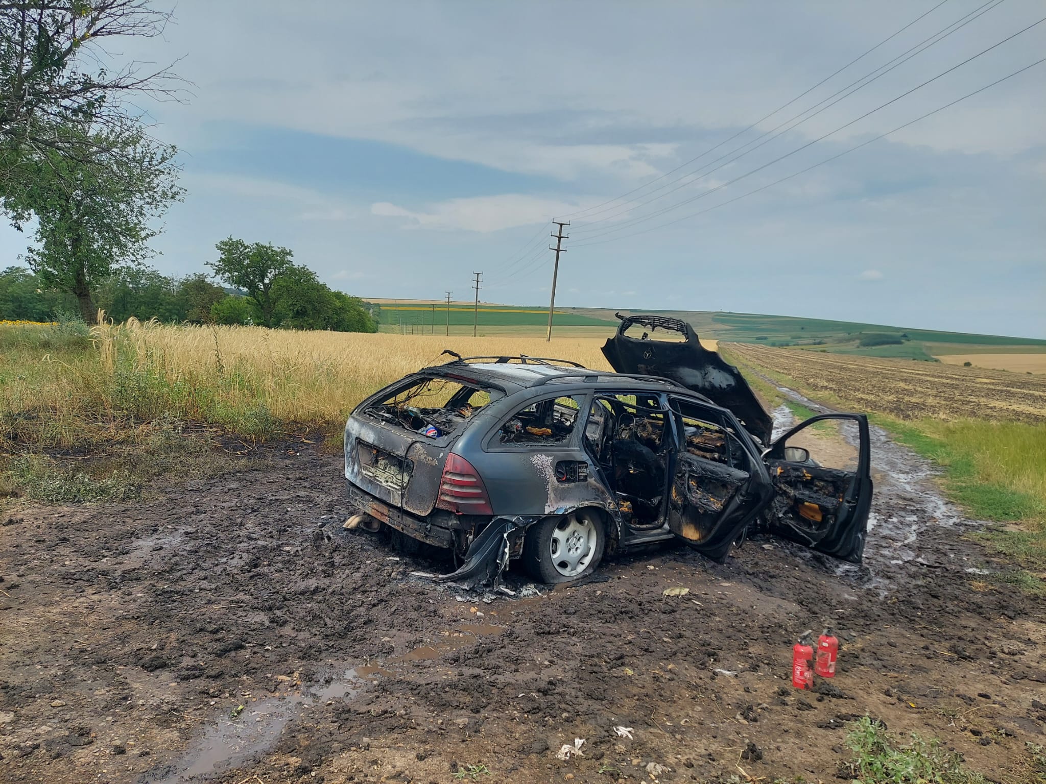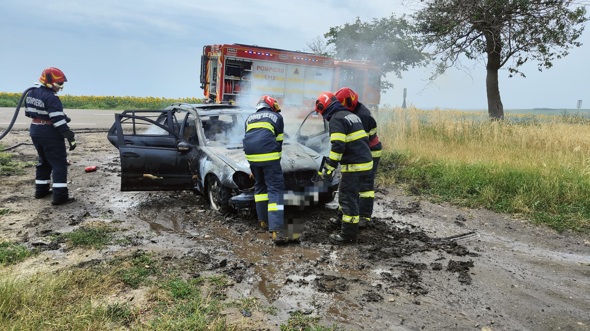 Aceștia au constatat faptul că autoturismul ardea în totalitate și au intervenit rapid pentru ca flăcările să nu se extindă la un lan de grâu. Din fericire nu au fost persoane rănite.