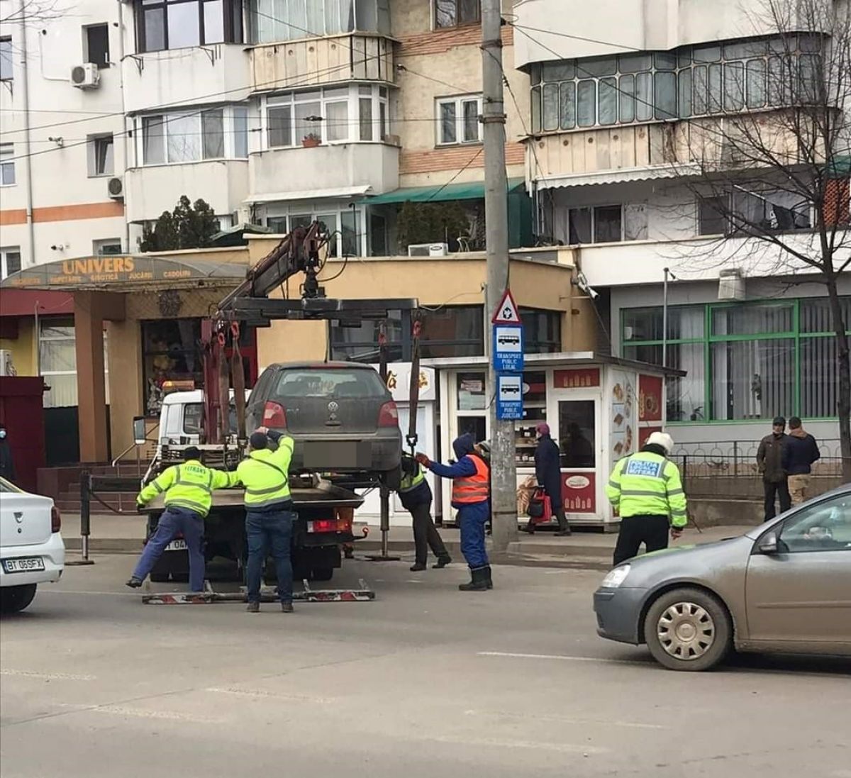 S-au ridicat mașini parcate în stațiile mijloacelor de transport public local, dar de asemenea și un autoturism aflat la intersecția străzilor Grigorescu cu Pușkin.
