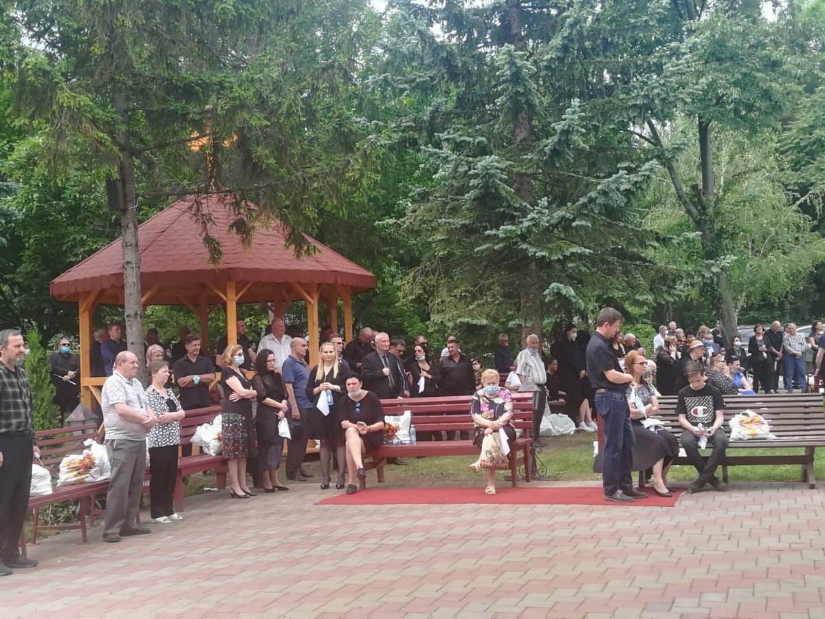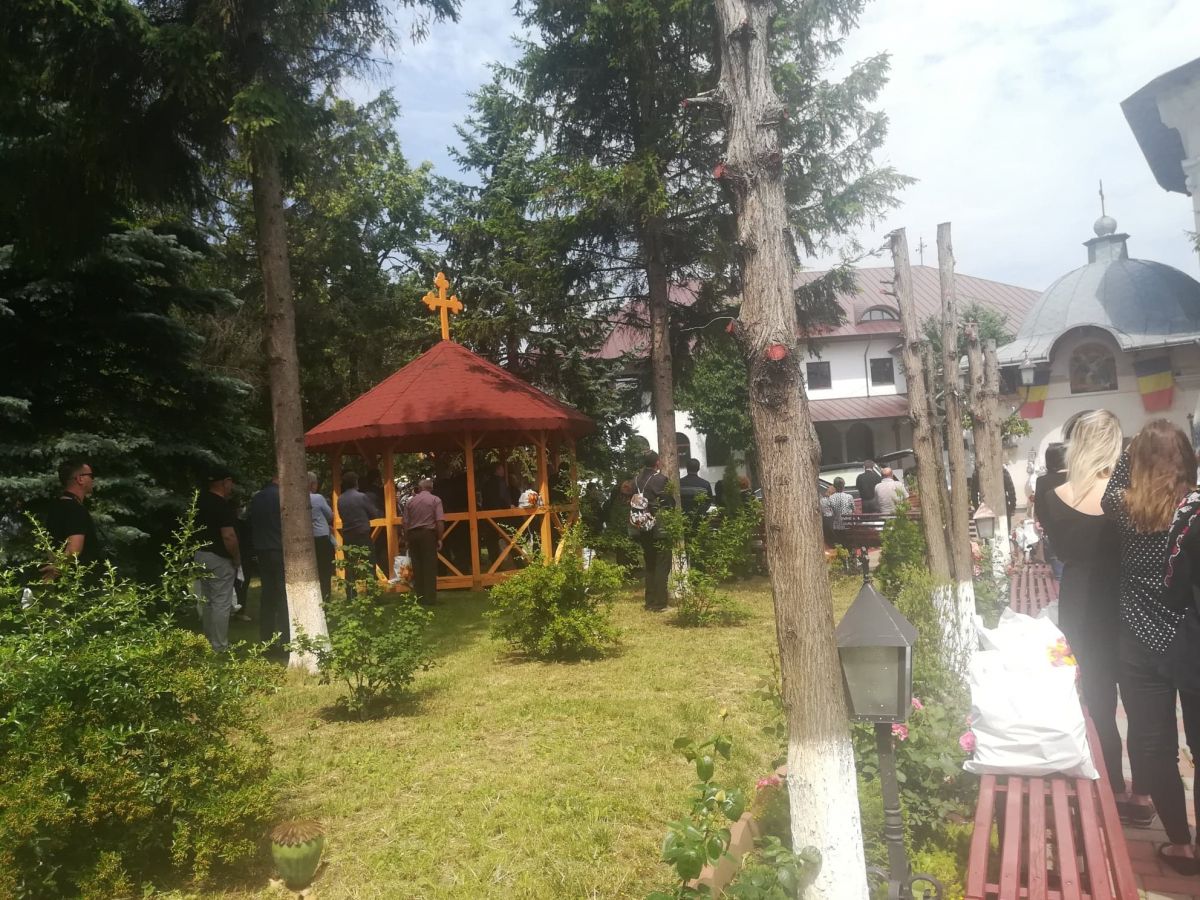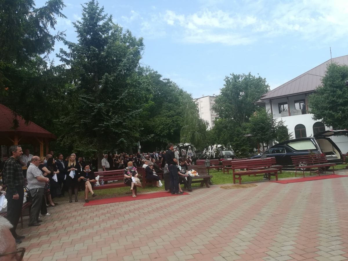 Atmosfera este una extrem de apăsătoare, majoritatea celor prezenți au lacrimi în ochi și ascultă vorbele preotului Partenie Apostoaie, care spune că nu luăm nimic de pe pământ, în călătoria spre viața veșnică.