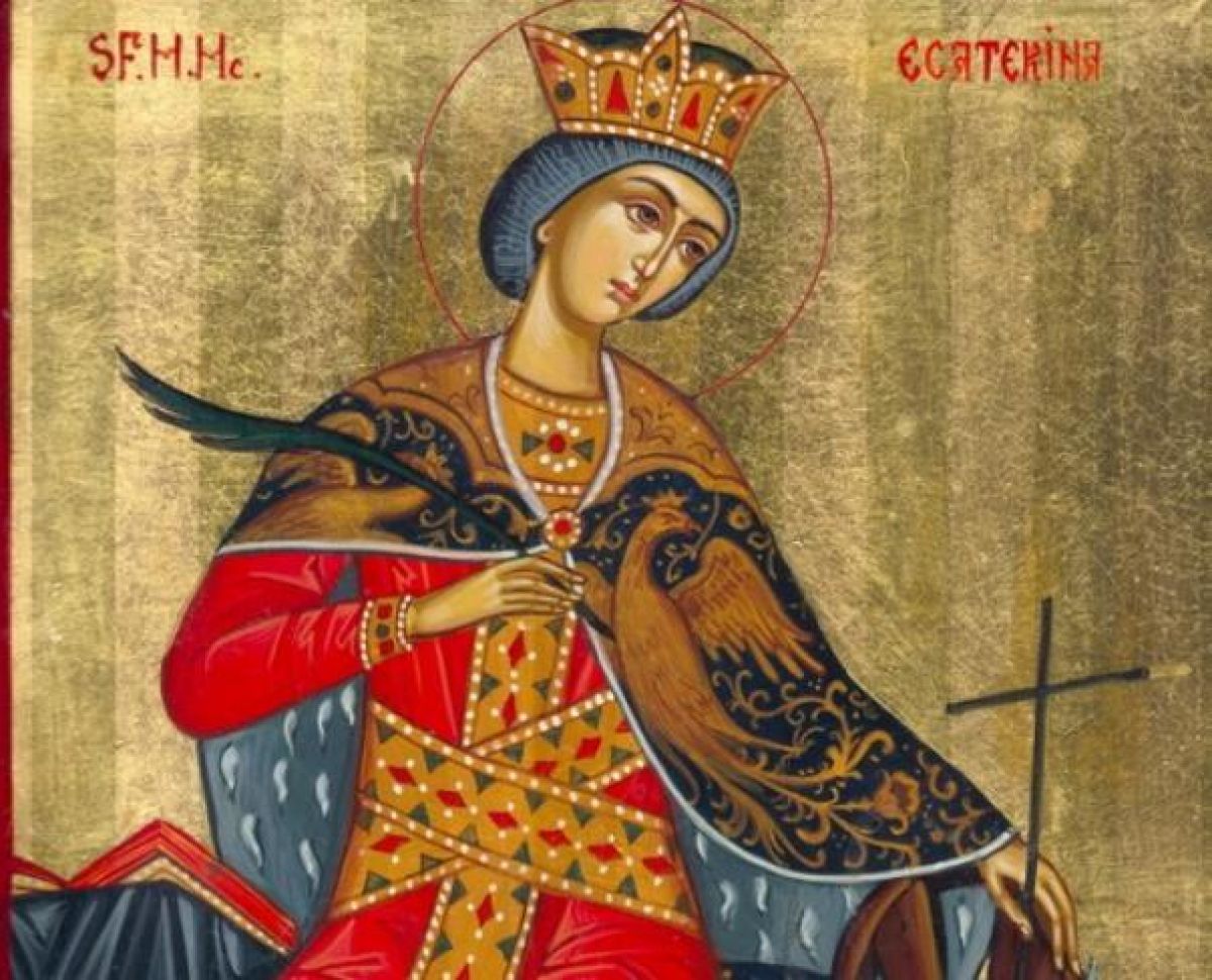 Sfânta Mucenița Ecaterina este prăznuită pe 25 noiembrie. A trăit în timpul împăratului Maximian, la începutul secolului al IV-lea. S-a născut în cetatea Alexandriei, într-o familie nobilă. Datorită frumuseții și înțelepciunii sale, însuși împăratul Maximian o dorea de soție.