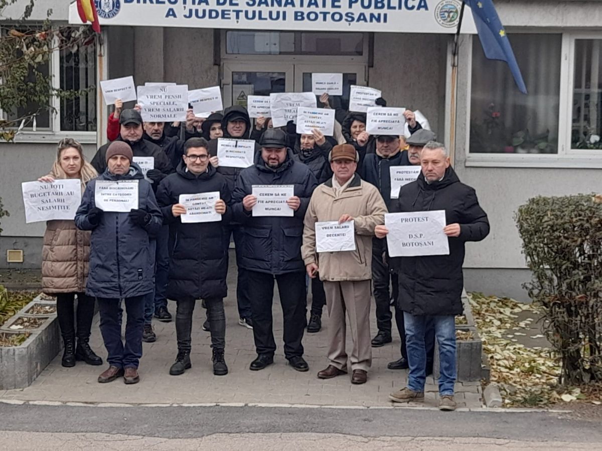 Angajații din sistemul sanitar botoșănean au ieșit astăzi din nou să protesteze.