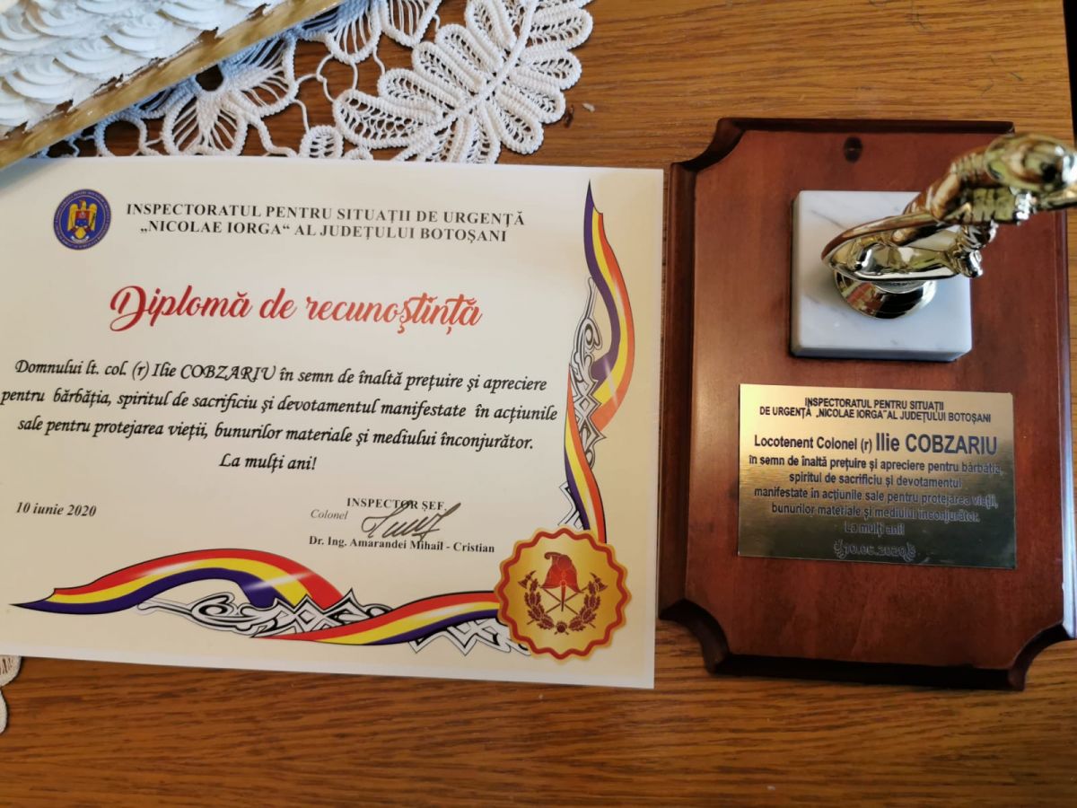 În condiții impuse de pandemie, pompierii botoșăneni i-au înmânat sărbătoritului o plachetă onorifică, o diplomă de recunoștință și un tort aniversar, în semn de înaltă prețuire și respect pentru o viață dedicată ajutorării semenilor, pentru profesionalism și sacrificiu, pentru exemplul dat generațiilor viitoare și pentru puterea de a construi singura instituție aflată pe primul loc în inima românilor.