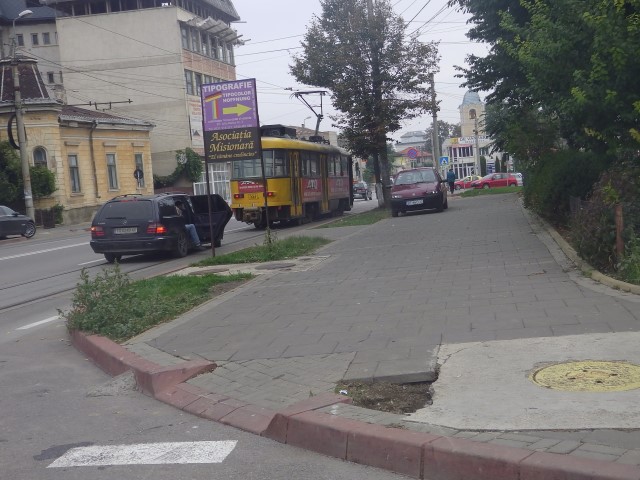 Aflată chiar pe trotuar și nesemnalizată, groapa de pe strada Ion Pillat, nu departe de capătul liniei de tramvai 101, poate fi o capcană mai ales noaptea pentru cei care folosesc acel perimetru. Crăpătura acesteia e destul de largă încât să provoace incidente nedorite. În orice caz, un nevăzător ar avea cu ușurință probleme pentru că nu este nici un obstacol care să delimiteze zona cu probleme.