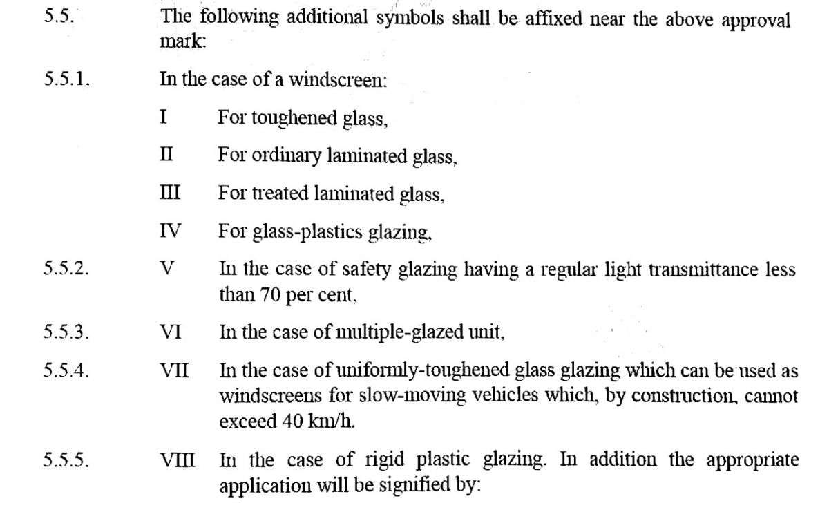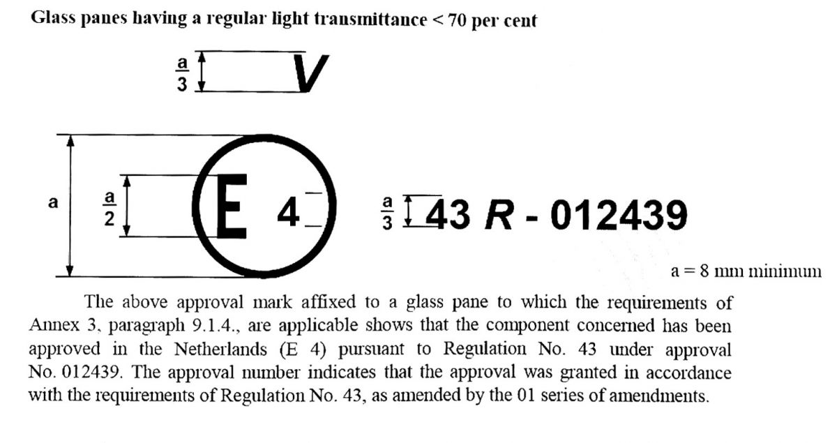 Ca sa fiți siguri că geamurile mai închise la culoare ale taxiului (menționate mai sus) sunt în regulă și nu vor face obiectul respingerii mașinii la inspecția RAR, asigurați-vă că au imprimate din fabricație caracteristicile V43R (marcajul ștanțat care atestă că geamul este conform).