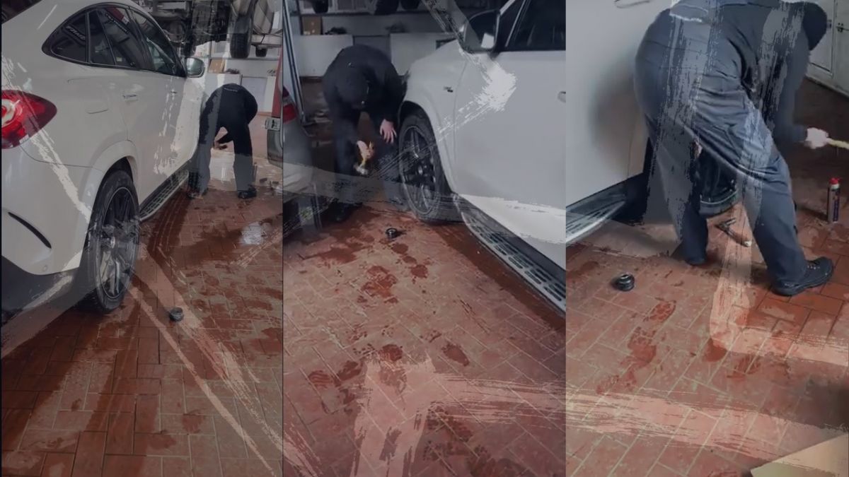 El l-a surprins pe angajat cum lovea roțile cu un ciocan, probabil din plastic, pentru a le scoate.