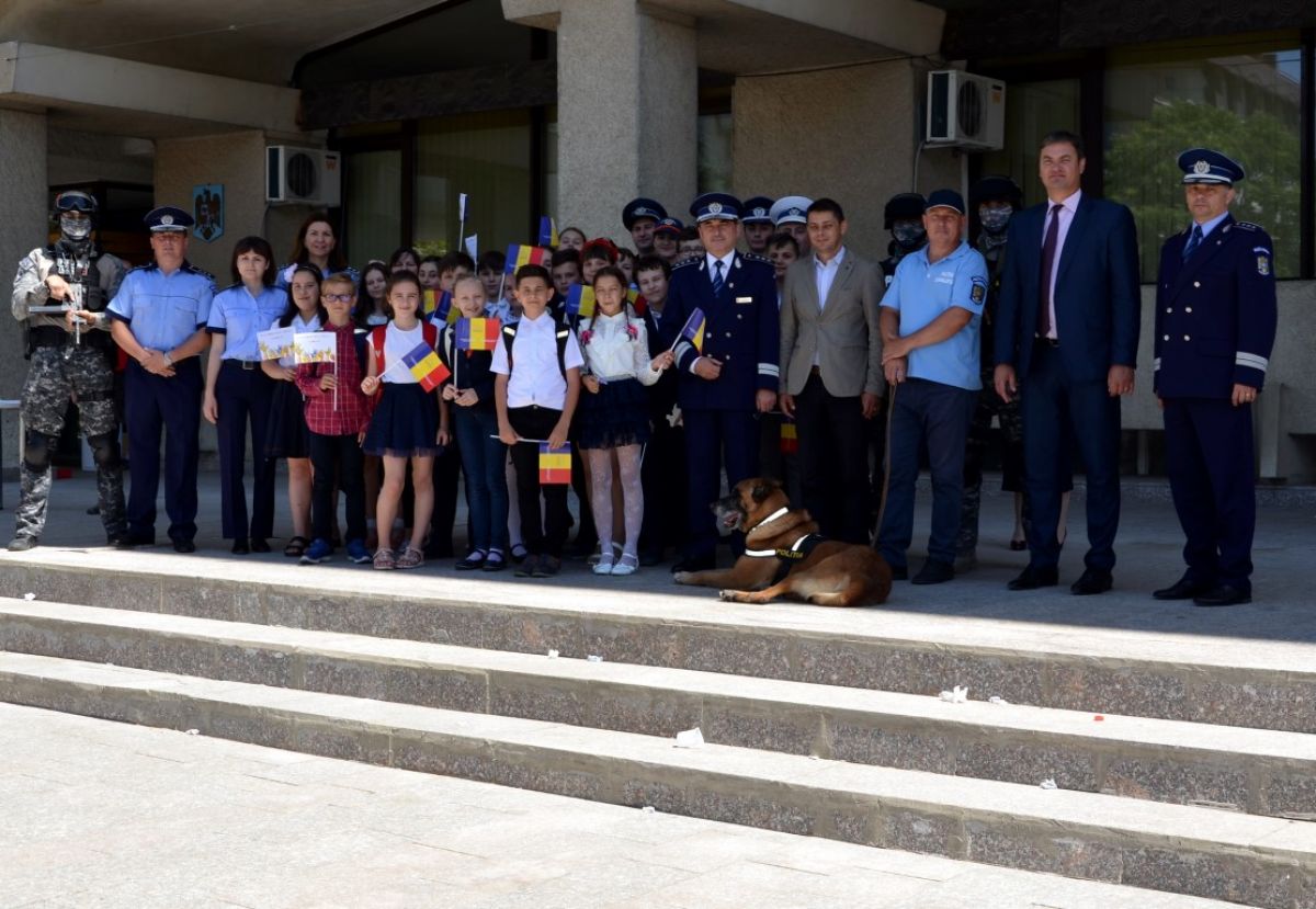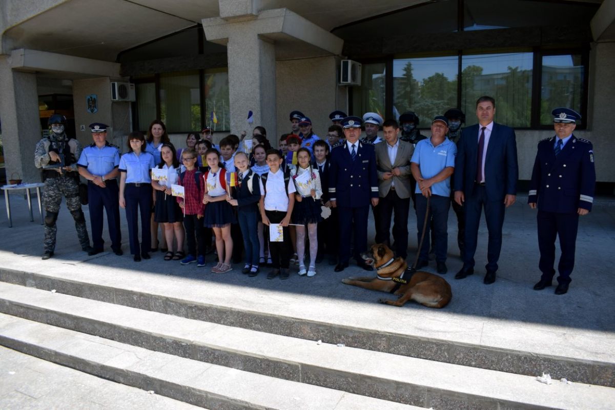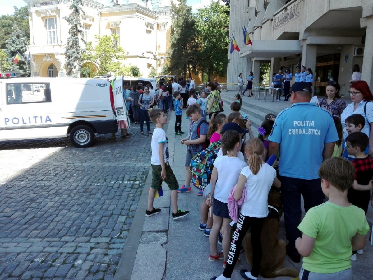 Peste 200 de copii de la mai multe unităţi şcolare din municipiul Botoşani au venit astăzi să stea de vorbă cu poliţiştii, în parcarea din faţa Prefecturii.