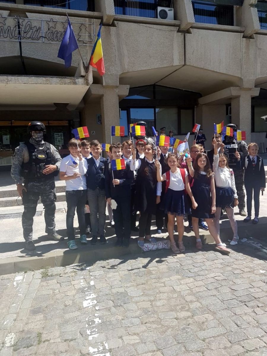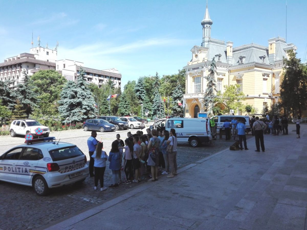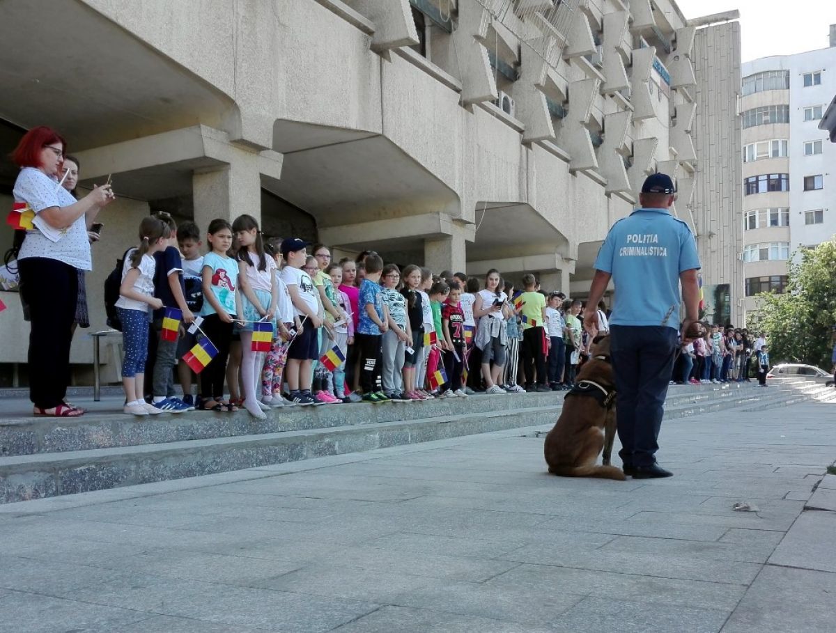 Peste 200 de copii de la mai multe unităţi şcolare din municipiul Botoşani au venit astăzi să stea de vorbă cu poliţiştii, în parcarea din faţa Prefecturii.