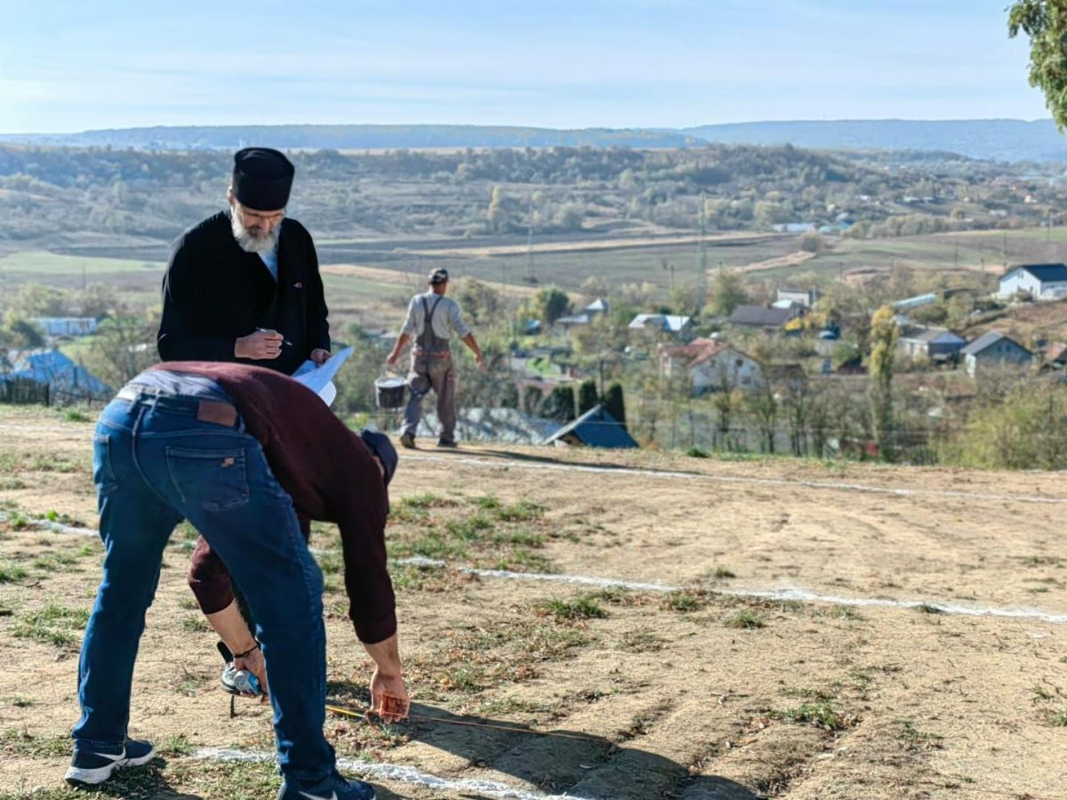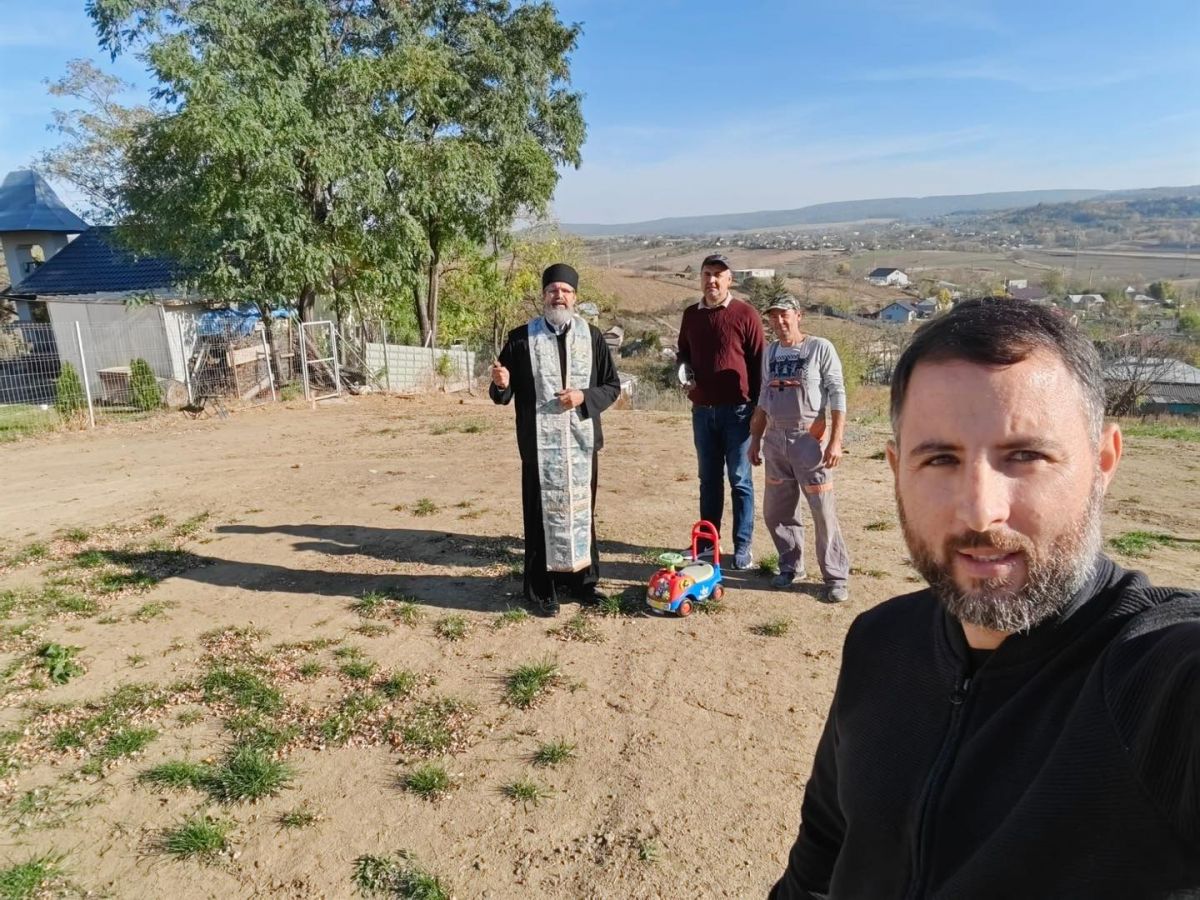 După o rugăciune de binecuvântare a lucrărilor, s-a făcut trasarea și au început săpăturile pentru fundație.