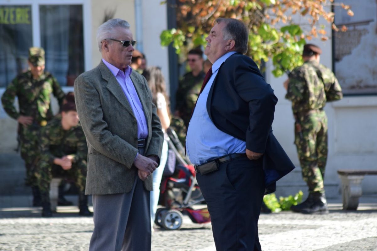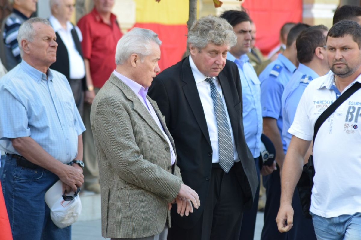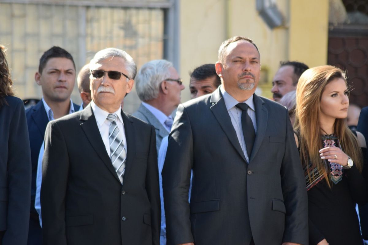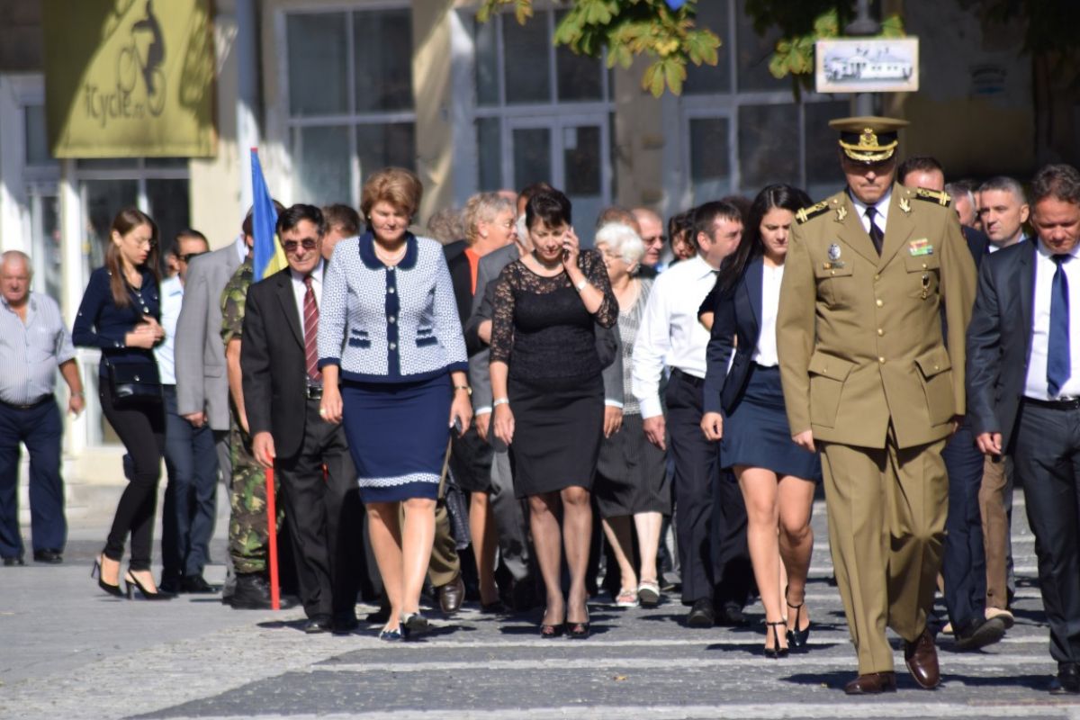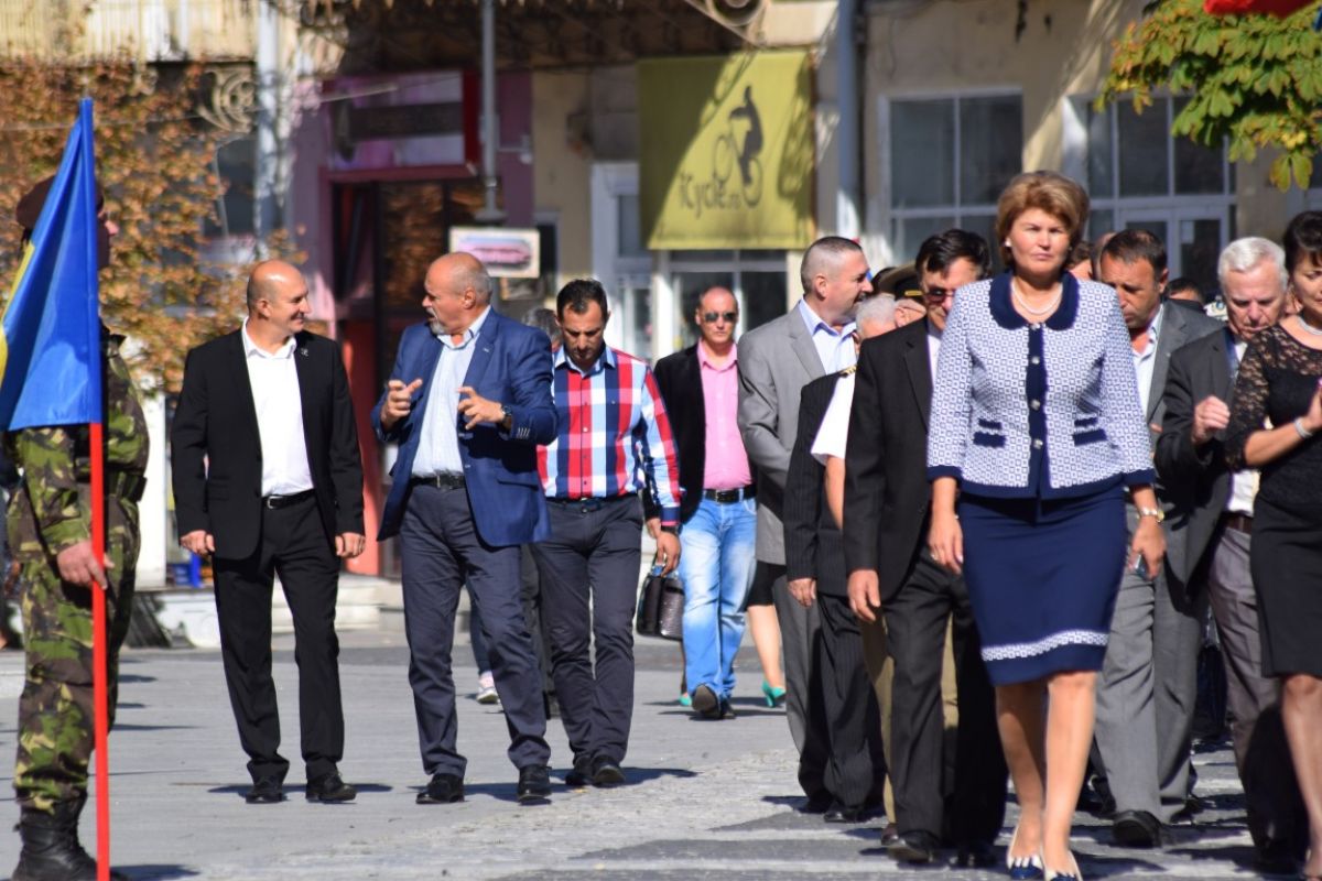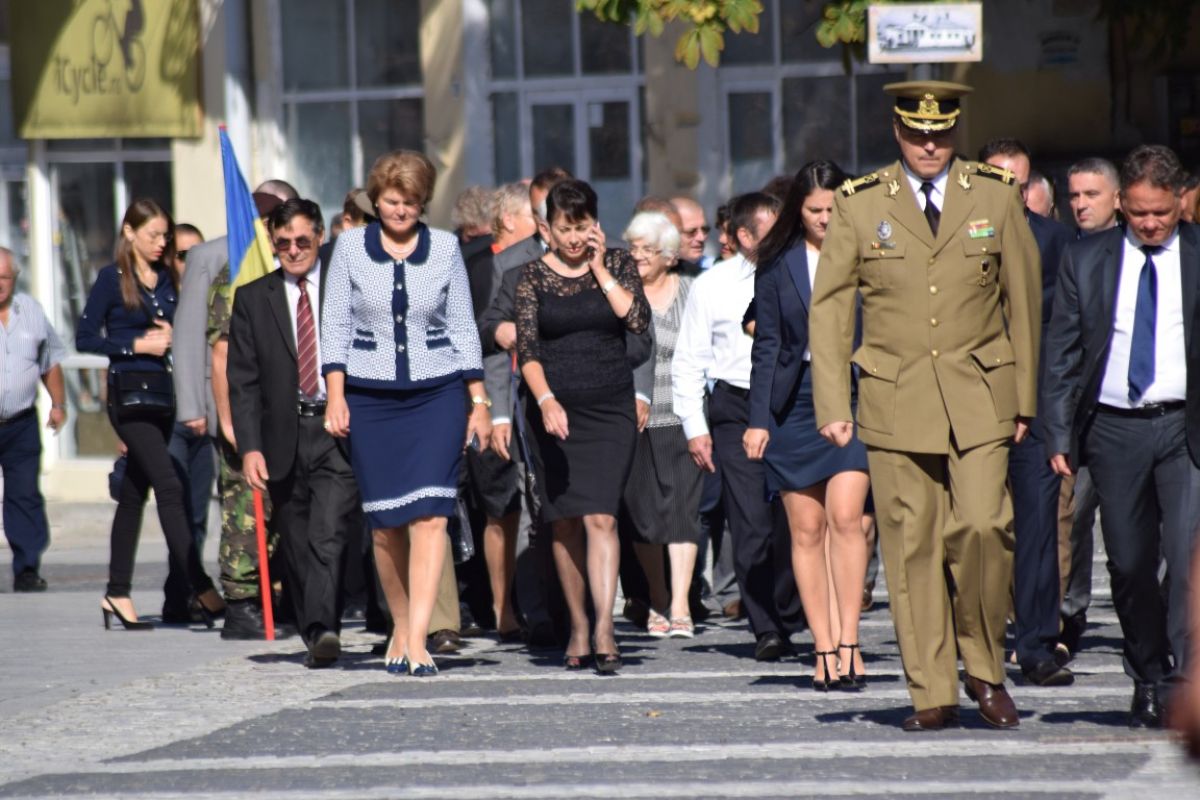Oficialitățile, atâtea câte au fost în oraș s-au încolonat și au parcurs distanța bătută de atâtea ori dintre Palatul Administrativ și Centrul Istoric. Directori, parlamentari, șefi de instituții, politicieni. Acestea au fost persoanele care au umplut o latură a careului din Piața 1 Decembrie.