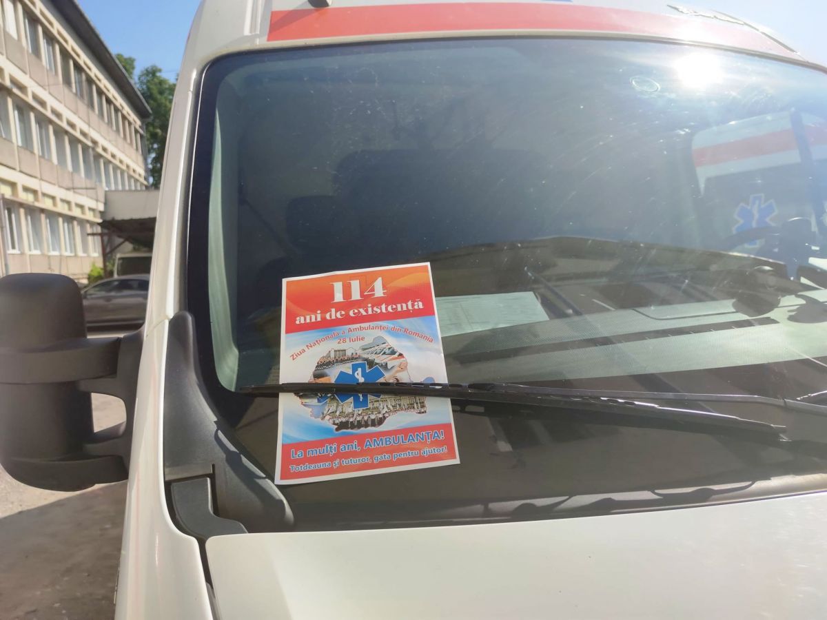 De asemenea, pe ambulanțe au fost puse afișe pentru a fi marcat acest moment.