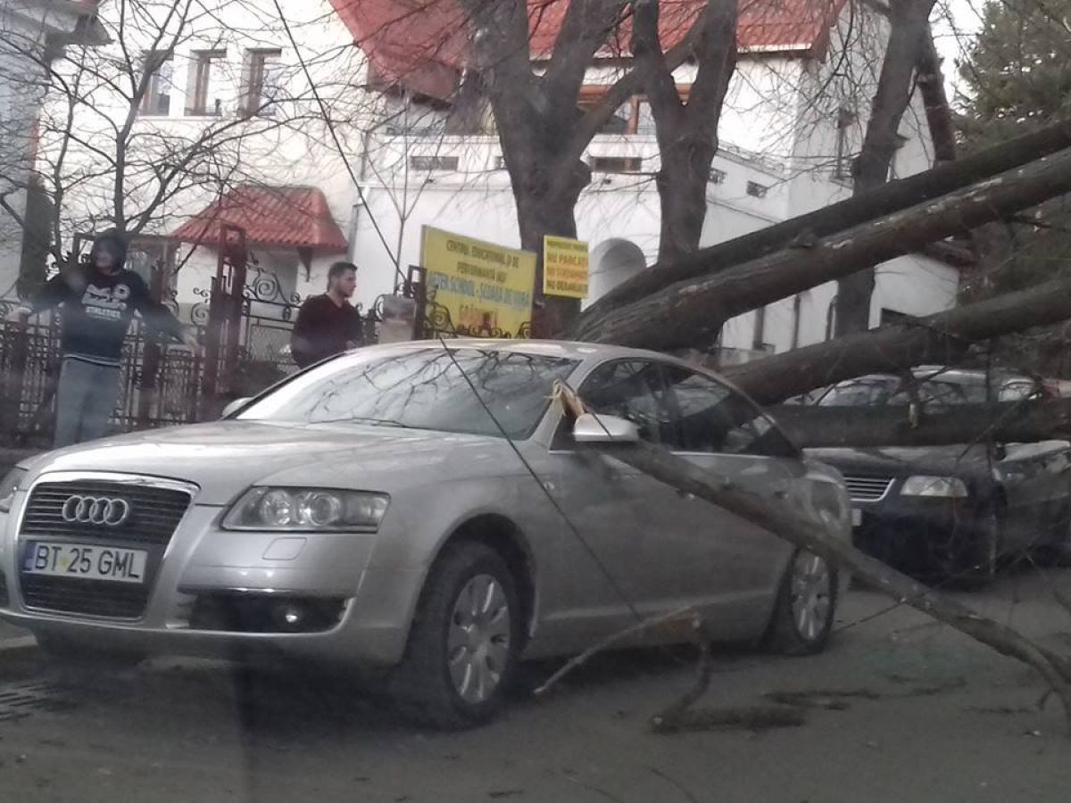 Furtuna puternica care a navalit peste orasul Iași a facut deja prima paguba. Un incident produs pe strada Lascar Catargi il va costa scump pe un botosanean, acesta alegandu-se cu autoturismul distrus din cauza unui copac rupt din radacini de vantul devastator.