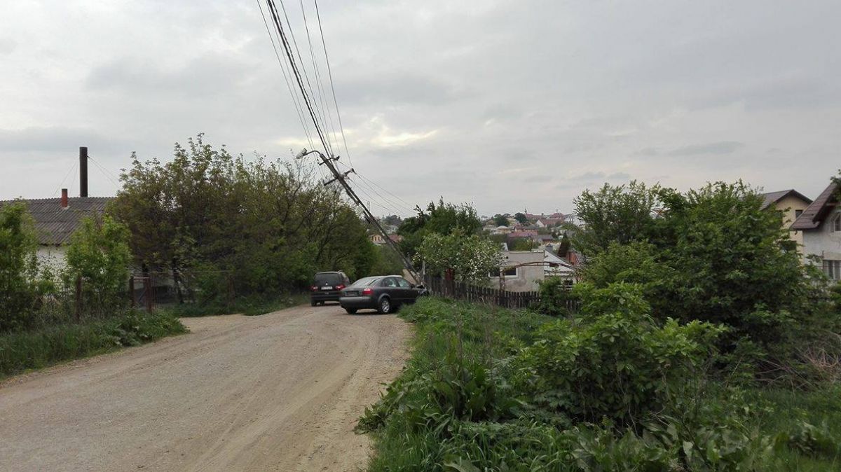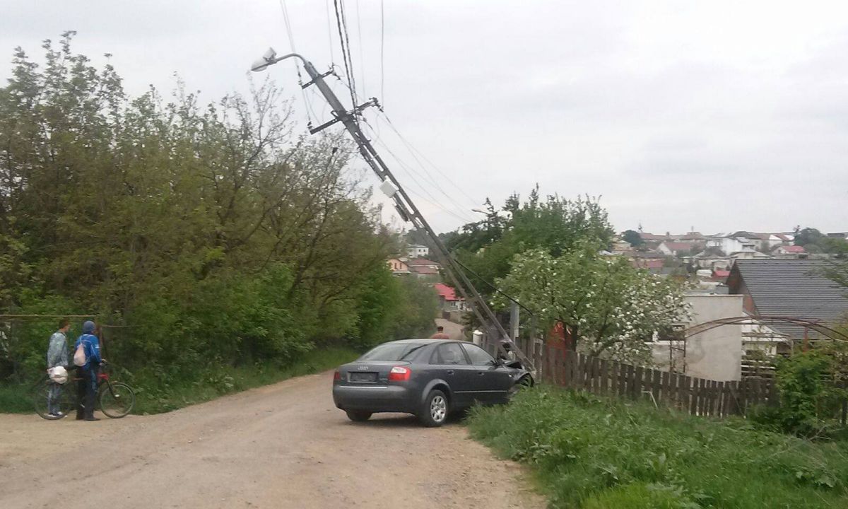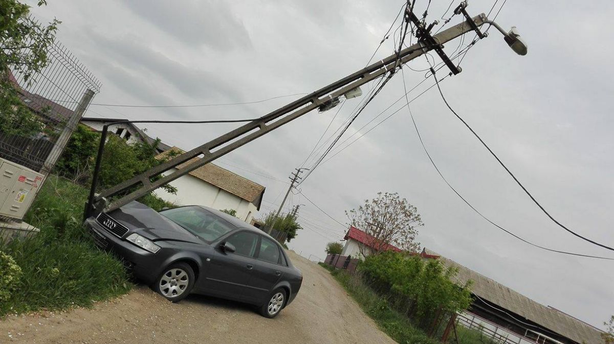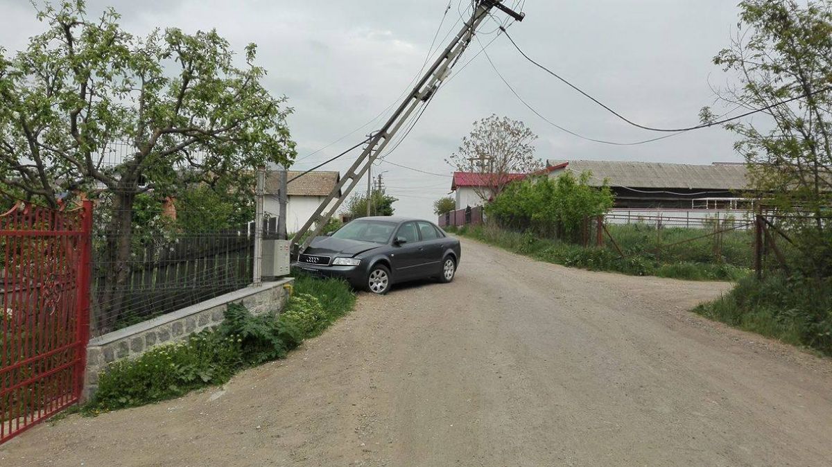 După ce a doborât aproape stâlpul care aparține companiei E.ON Moldova și care stă înclinat de azi noapte, șoferul a luat plăcuțele de înmatriculare ale autoturismului și l-a abandonat în locul în care a făcut accidentul. Nu l-a mai mișcat de acolo.