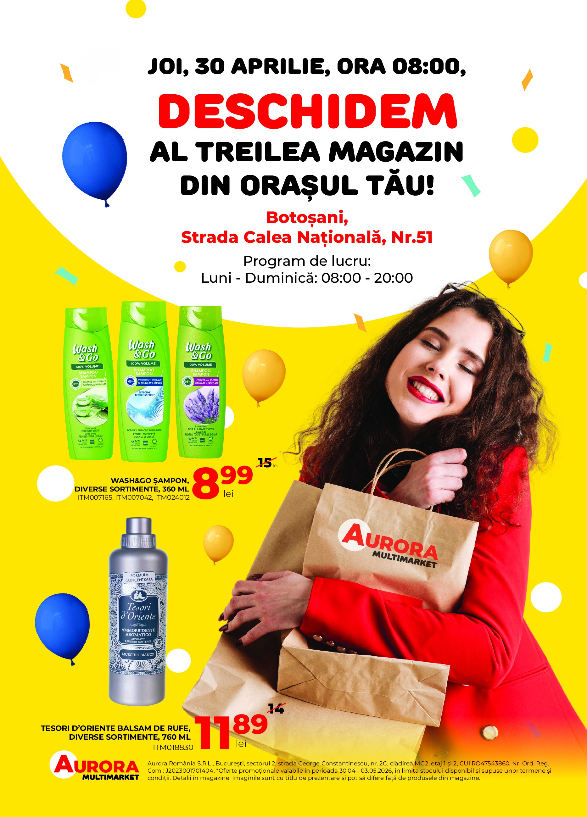 (P) Aurora Multimarket continuă să crească și ajunge mai aproape de tine! Joi, 30 aprilie, de la ora 08:00, deschidem oficial cel de-al treilea magazin din Botoșani.