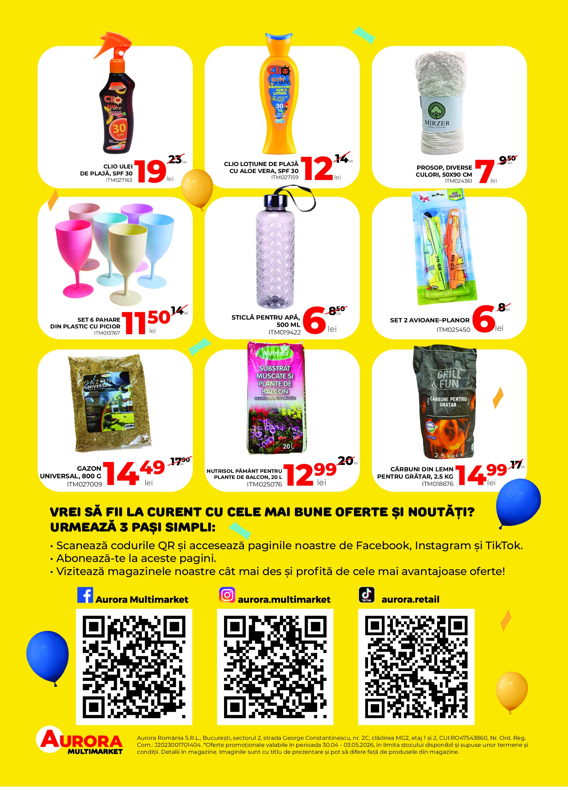 Pentru noutăți și promoții exclusive, urmărește Aurora Multimarket pe rețelele sociale: