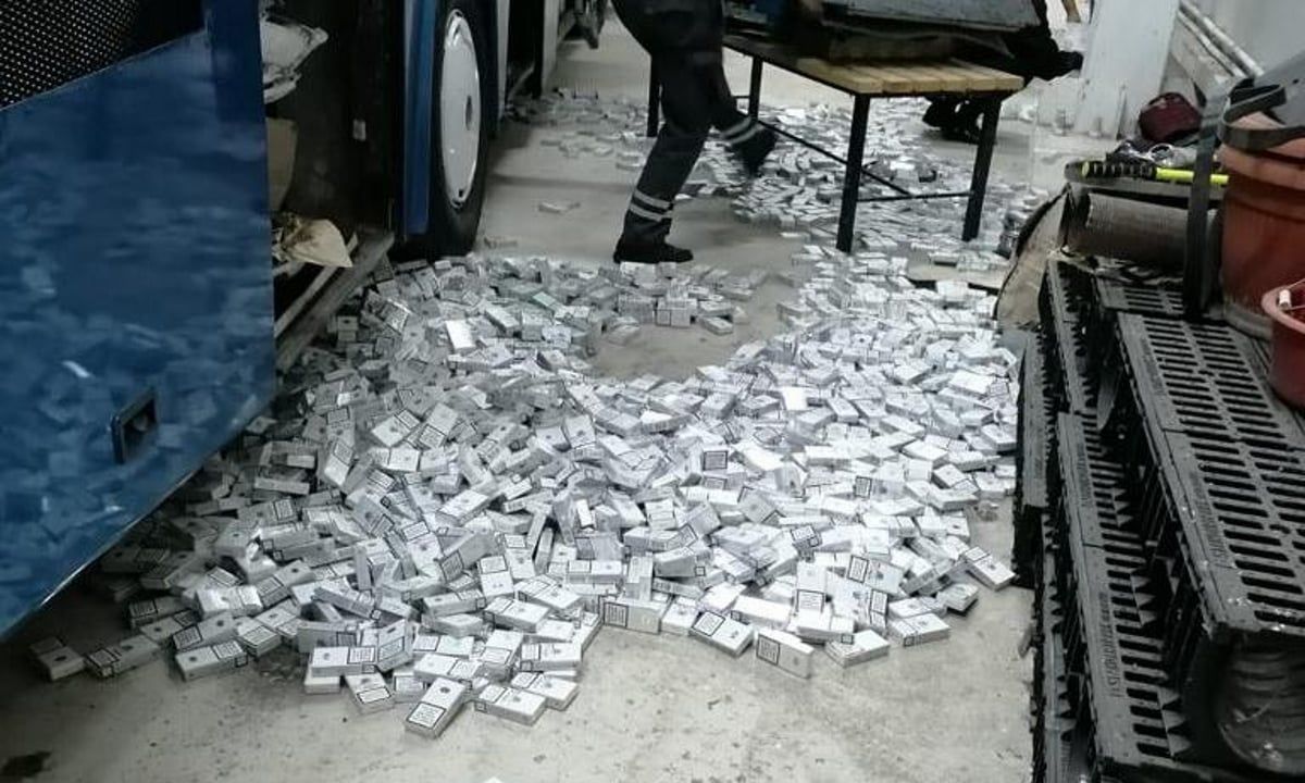 Peste 90.000 de țigarete de contrabandă într-un autocar defect, înmatriculat în România.