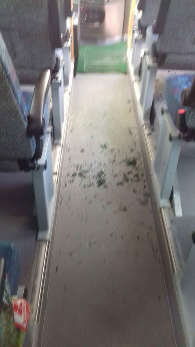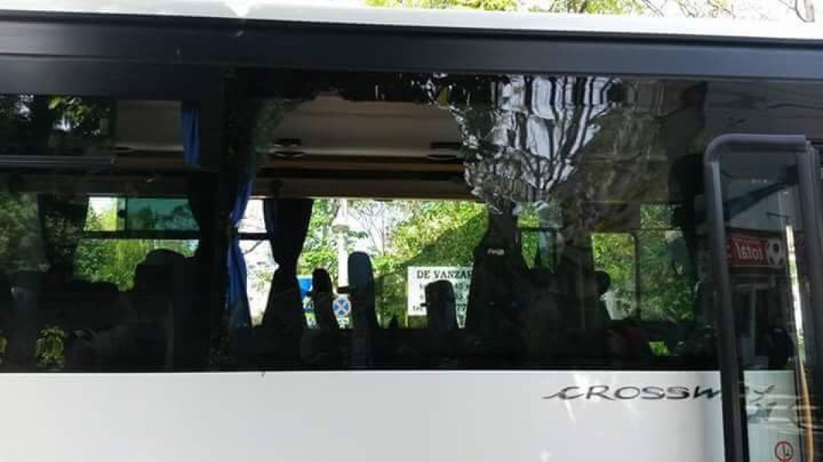 Autocarul care a asigurat transportul suporterilor Gaz Metan la Botoşani, s-a ales cu geamurile sparte.