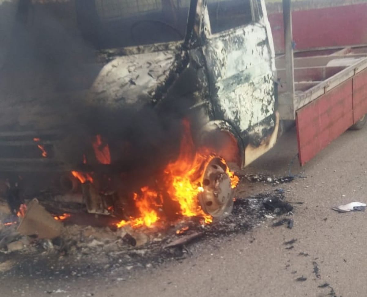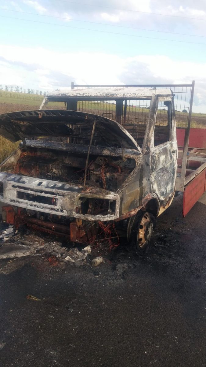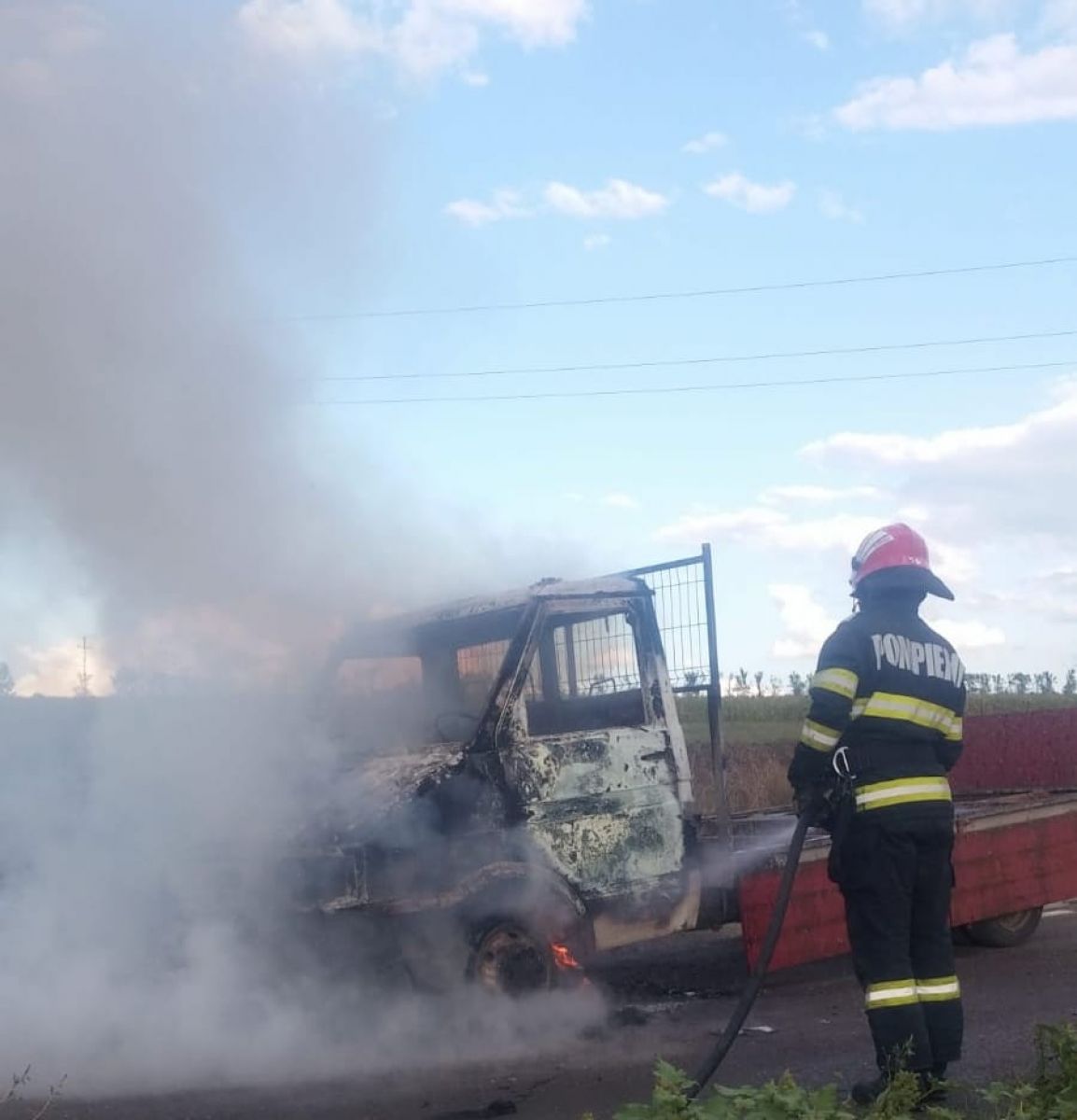 O autoutilitară a ars, parțial, luni după-amiază, pe un drum din județ.