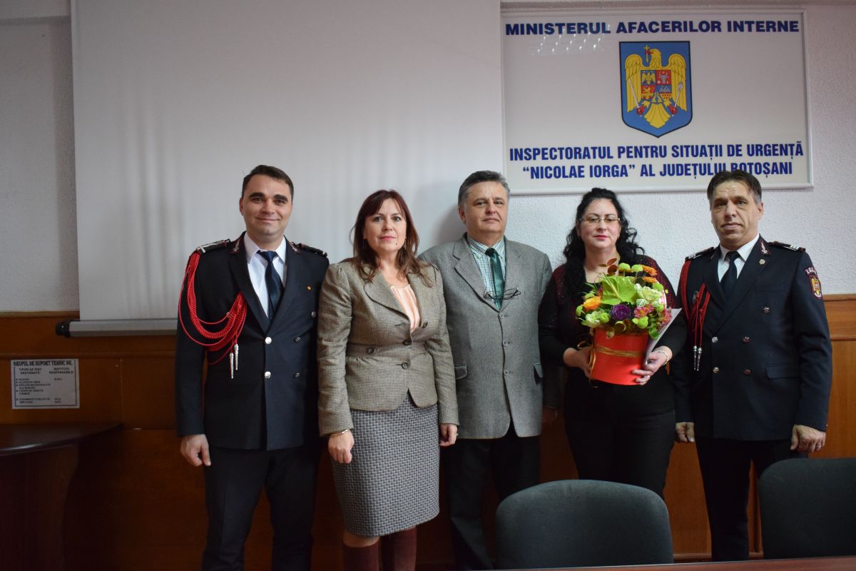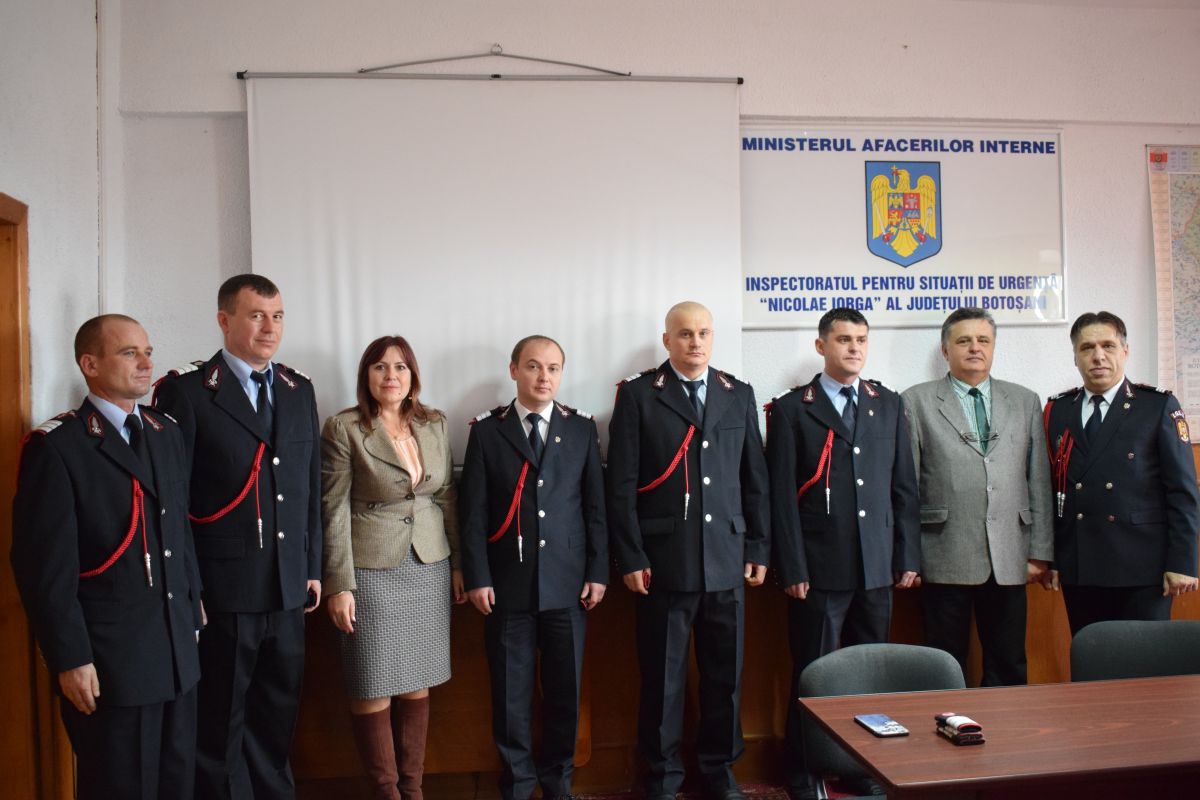 Ceremonia de avansare în grad a avut loc astăzi, la sediul Inspectoratului pentru Situaţii de Urgenţă „Nicolae Iorga” al Judeţului Botoşani, în prezenţa colegilor, dar şi a subprefectului judeţului, Daniela Beclea și a șefului Centrului Medical Județean Botoșani, dr. Doru Culiceanu.