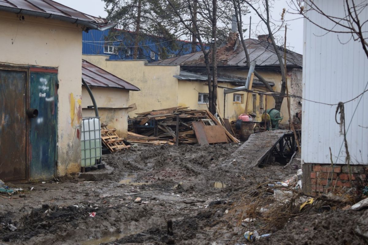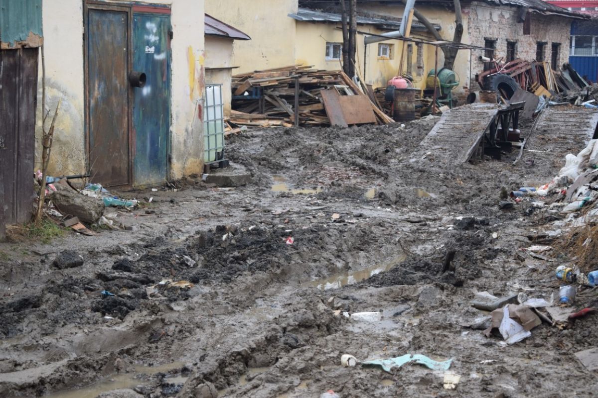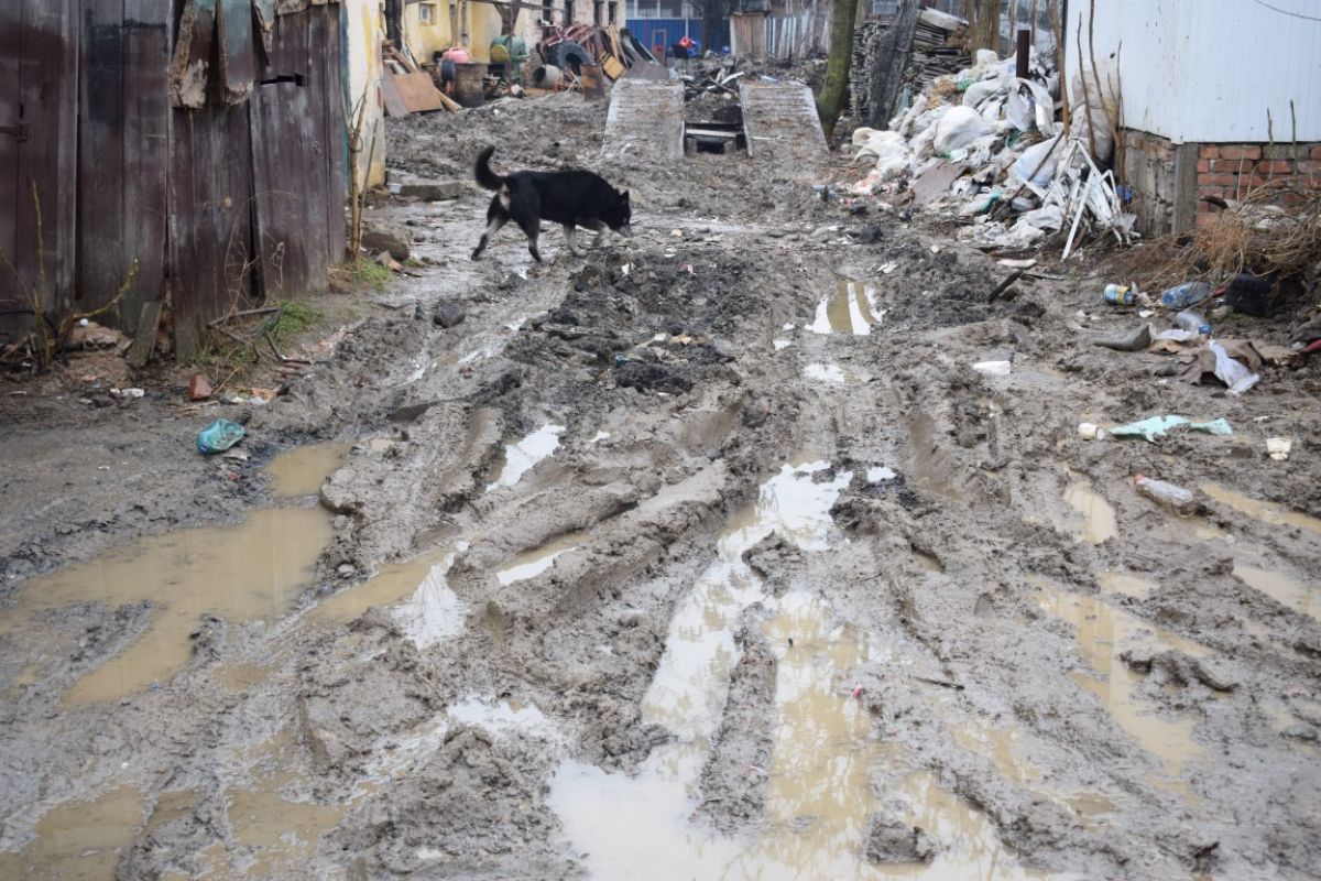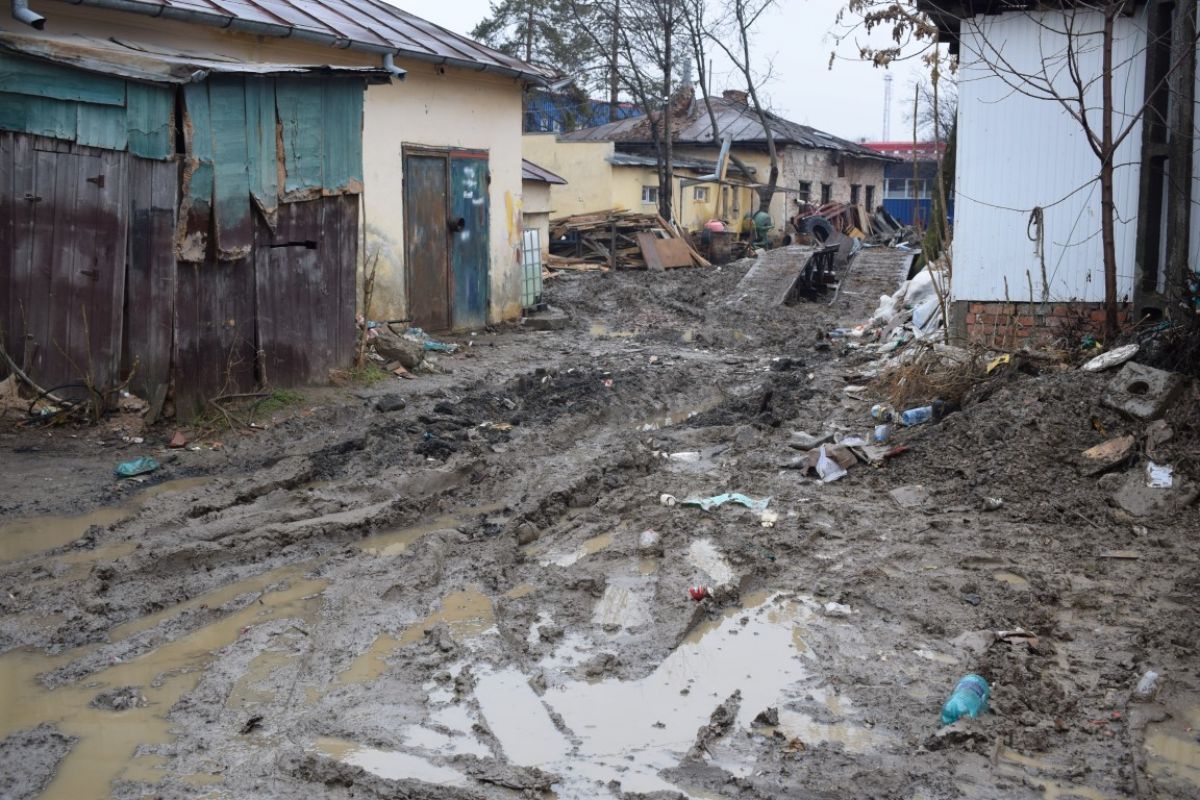 În acest tablou, câțiva botoșăneni își derulează activitățile, un atelier de mobilă, firme de construcții sau de transport public persoane. Fiecare zi din ultima perioadă a fost o luptă cu noroiul.