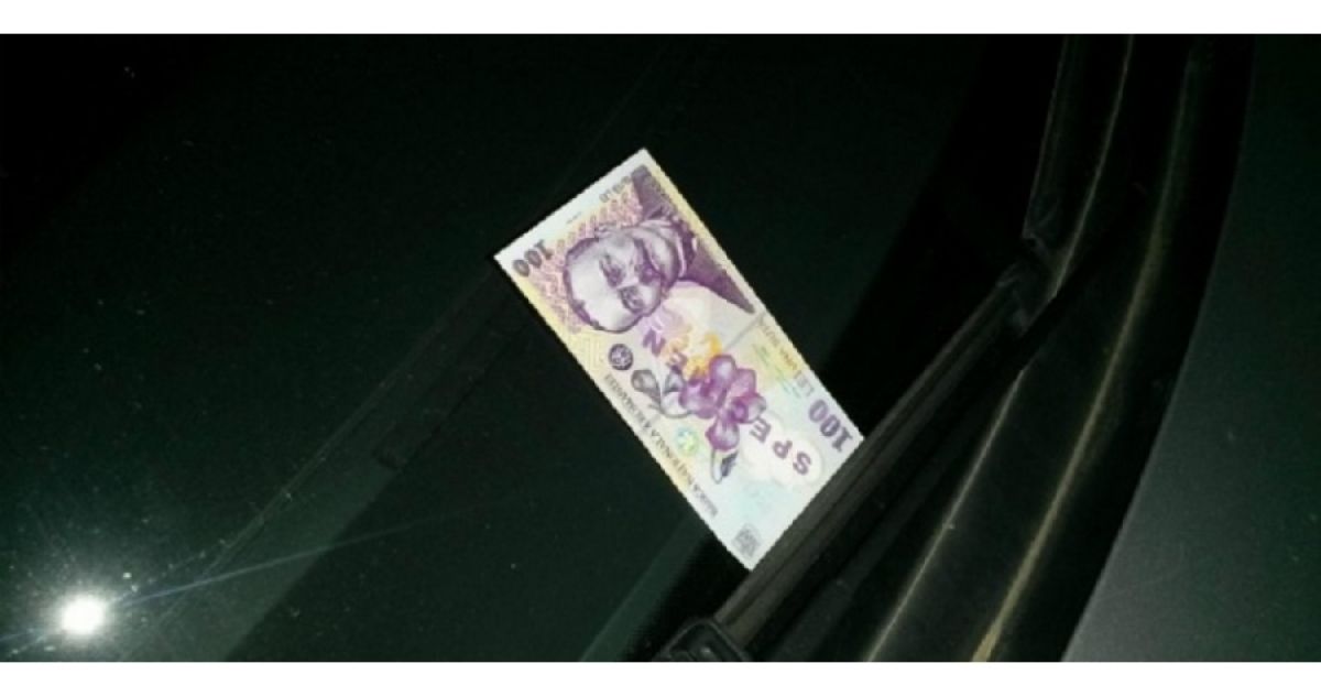 Metoda de furt „bancnota din parbriz” lovește cu precădere în parcările centrelor comerciale – și cu cât mai aglomerat, cu atât mai bine, relatează ziarul evenimentul. Escrocii ascund o bancnotă falsă de 100 sau de 50 de lei, de obicei la ștergător. Astfel, îi sare imediat în ochi șoferului care se întoarce la mașină.
