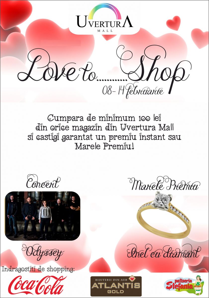 Sub îndemnul ”Love to… Shop”, cel mai apreciat complex comercial din Botoșani, premiază cumpărăturile realizate la brandurile preferate cu mii de premii instant, constând în praline de ciocolată, deserturi speciale la Patiseria ”Ștefania”, vouchere de cumpărături sau sticle de Coca Cola. În plus, toți clienții intră în tombolă pentru un superb Inel cu Diamant, acordat de Bijuteria ”Atlantis Gold”.