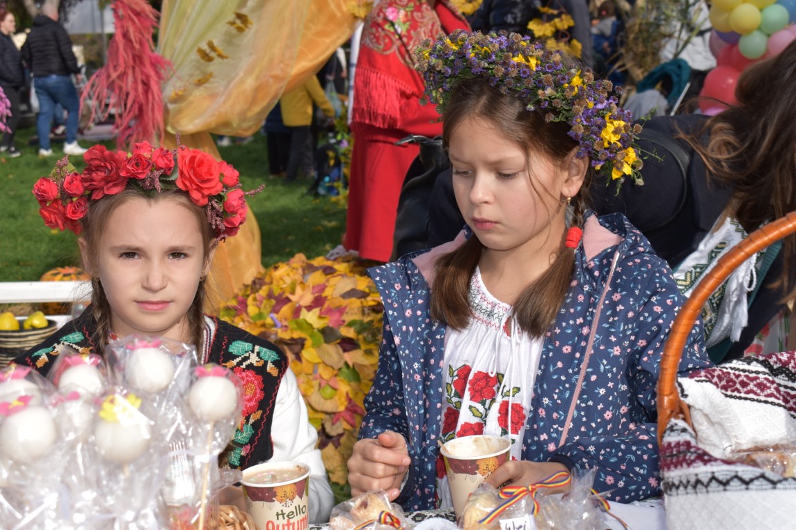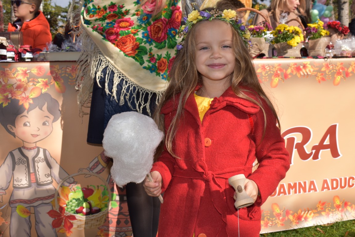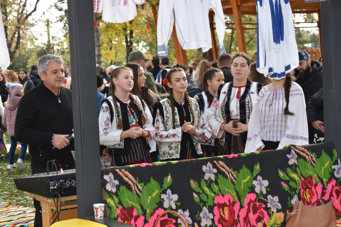 Imaginile surprinse de la acest târg al toamnei cu produse tradiționale în care au predominat costumele populare sau eșarfele tricolore prinse în păr pot fi vizualizate în materialul video de mai jos