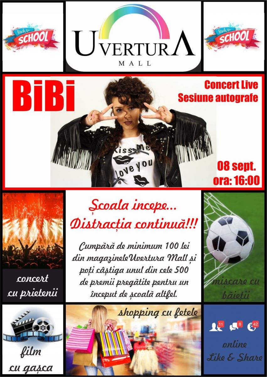Pe 8 septembrie de la ora 16:00 ia-ți toți prietenii și vino la o super întâlnire cu BiBi, unde muzica, dansurile și voia bună vă vor încărca pentru un început de an școlar incendiar.