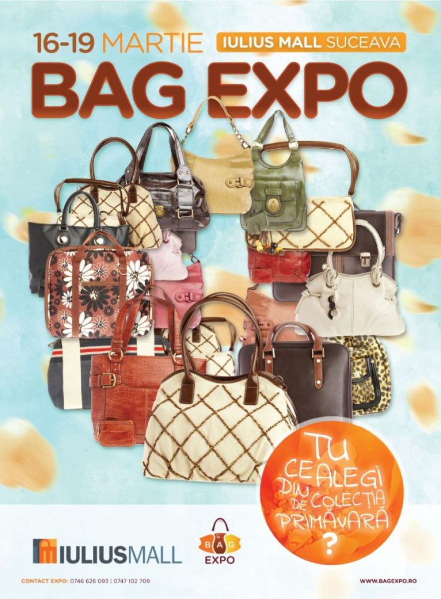 De joi până duminică inclusiv, în perioada 16 – 19 martie 2017, în zona intrării principale a Iulius Mall Suceava se desfășoară o nouă ediție Bag Expo, care aduce în prim-plan colecția de primăvară – vară, prezentând modele în tendințele actuale. Din piele naturală sau ecologică, cu imprimeuri geometrice sau florale, personalizate prin accesorii și detalii „statement”, cele aproximativ 4.000 de produse propuse de Bag Expo vor fi adorate de orice pasionată de modă. De la genți supradimensionate sau mini, până la rucsacuri versatile și cluth-uri extrem de elegante, toate vor fi disponibile într-o varietate de modele, la târgul din Iulius Mall. Pentru că se poartă gențile și poșetele argintii și aurii, cele în culori pastel sau cu un design vintage, Bag Expo le aduce mai aproape de iubitorele de shopping cu stil. În plus, vor fi disponibile și accesorii pentru bărbați, precum portofele, curele, genți, borsete, serviete, genți de voiaj sau rucsacuri sport.
