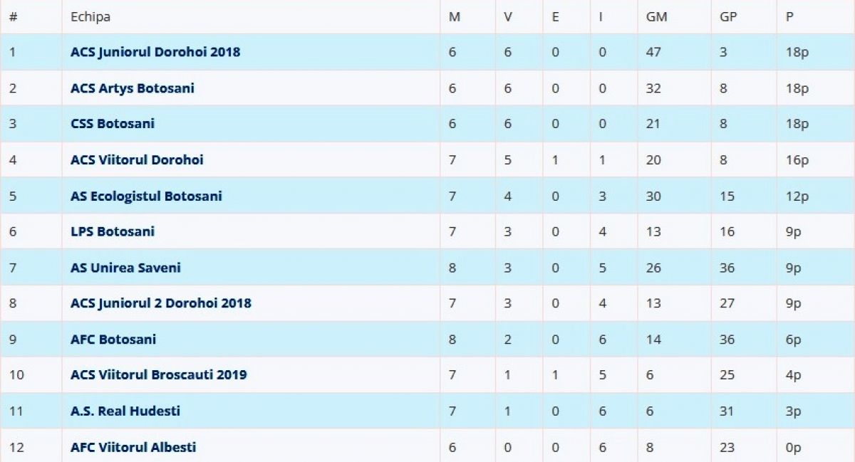 Iar dacă în turul primei competiții fotbalistice a țării am avut exemplul Hermannstadt, care a terminat turul pe locul 5, în campionatul județean de juniori am putea vorbi de Asociația Sportivă Ecologistul Botoșani.