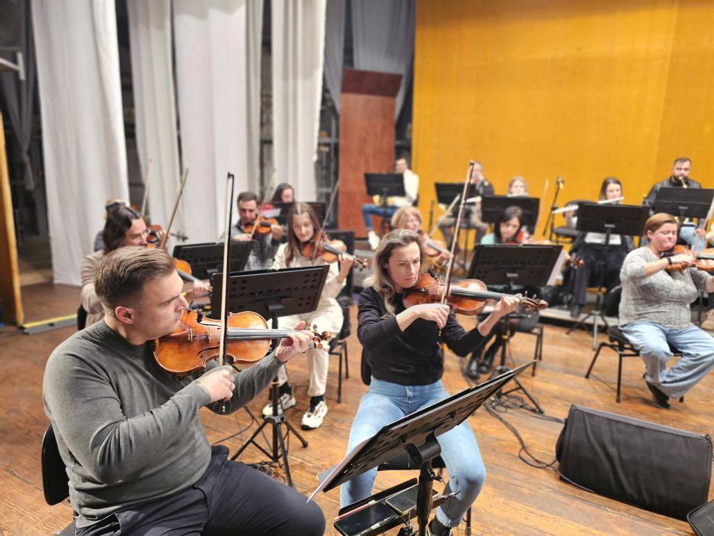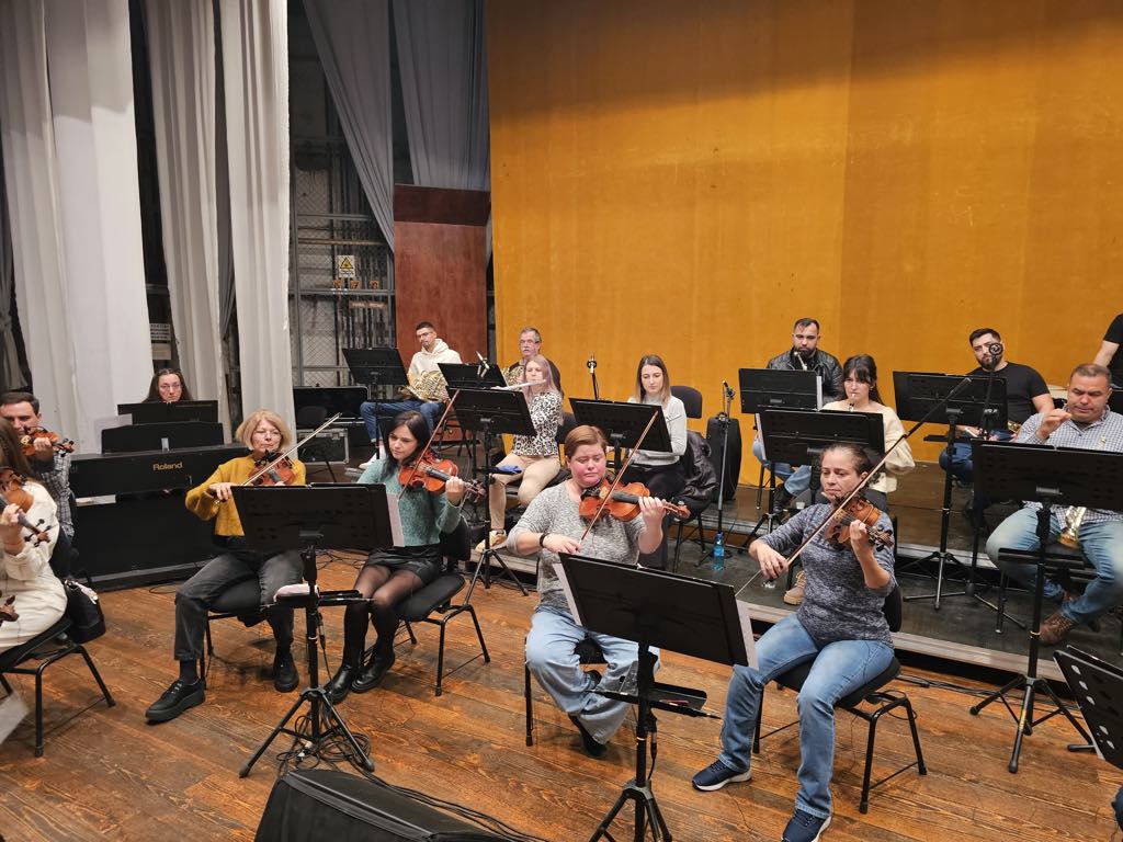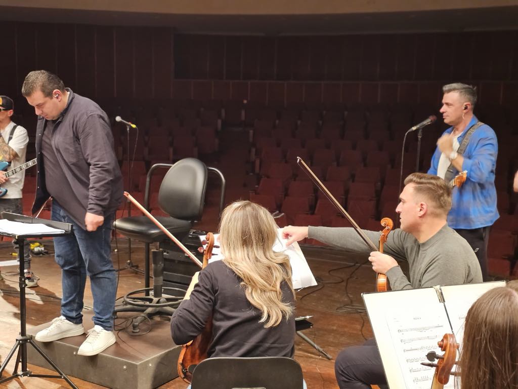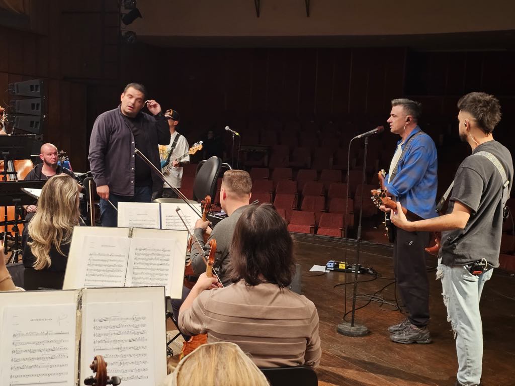 Cornel Ilie și colegii săi de trupă au sosit sâmbătă la Botoșani și spre seară au făcut o repetiție alături de orchestra simfonică a Filarmonicii ”George Enescu”.