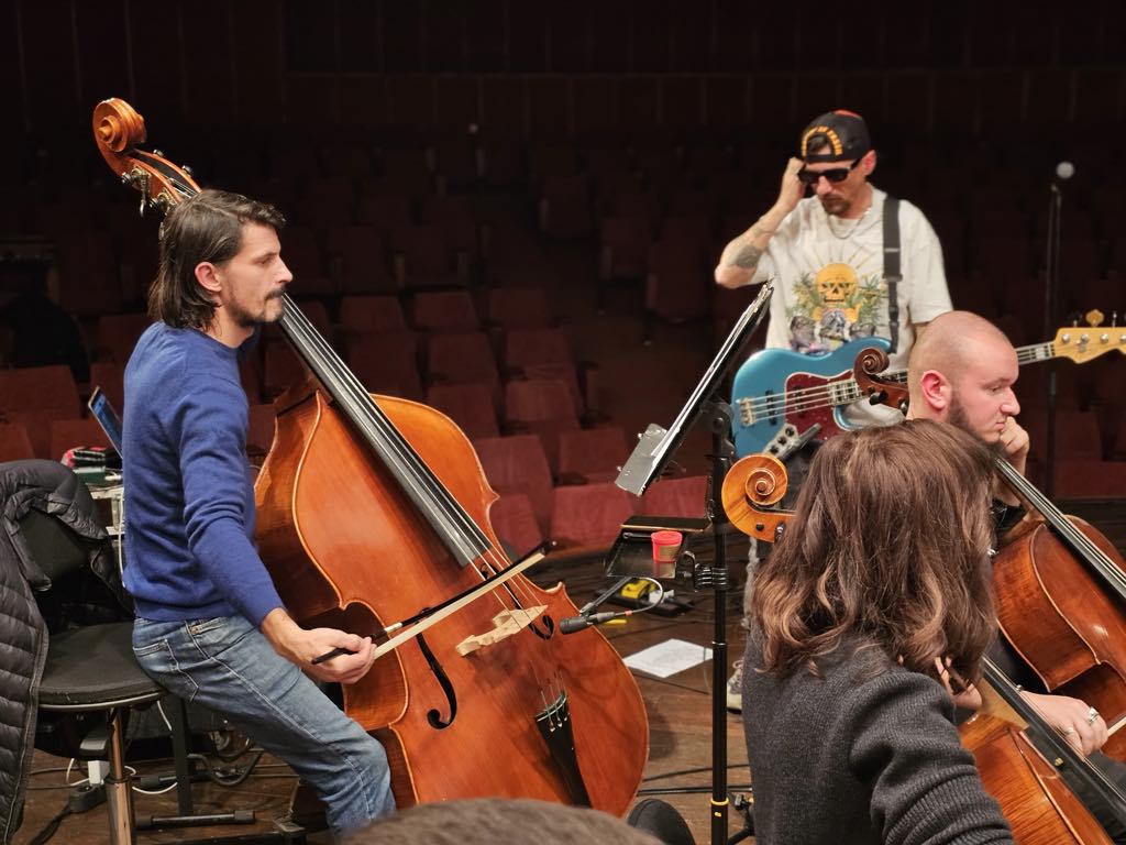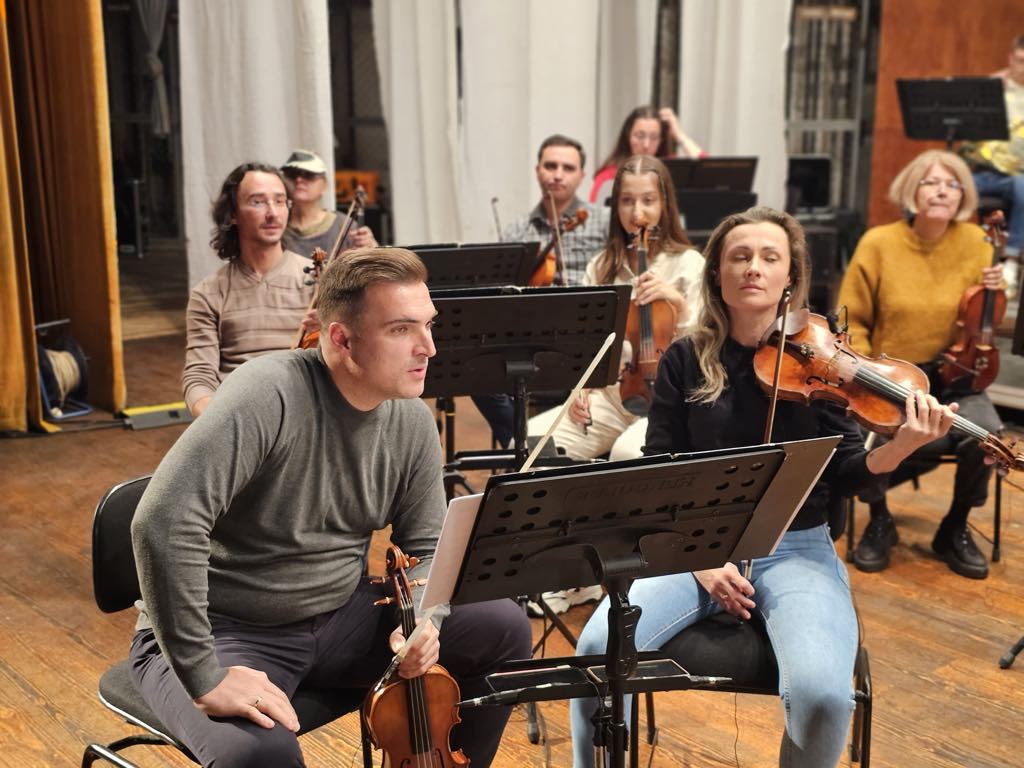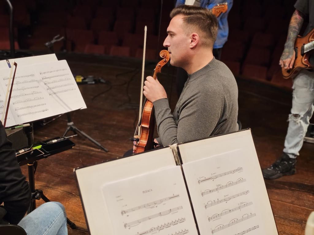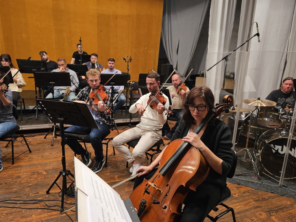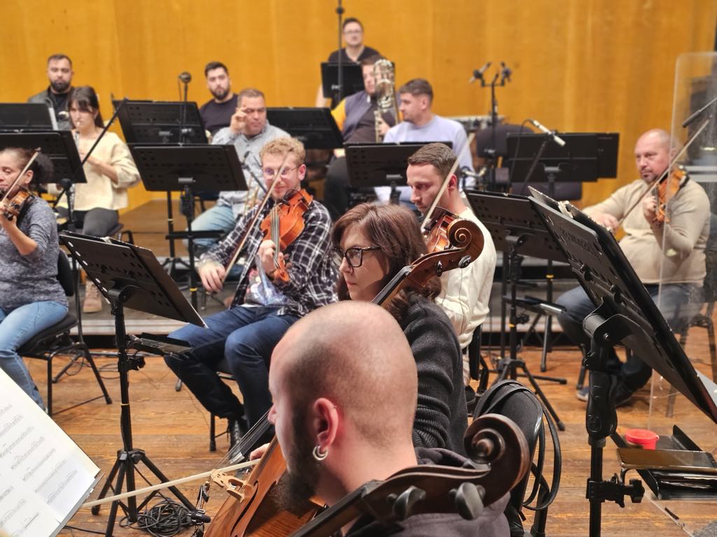 Cornel Ilie și colegii săi de trupă au sosit sâmbătă la Botoșani și spre seară au făcut o repetiție alături de orchestra simfonică a Filarmonicii ”George Enescu”.
