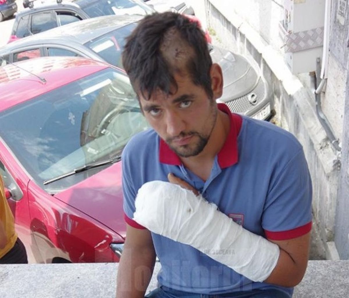 Ieşit din spital, Florin Valentin Rotaru are o mână în ghips, la care simte dureri foarte mari. Şi pe picior are încă urme ale bătăii crunte pe care a primit-o, iar în cap are tăieturi şi copci care atestă că a fost victimă a unor barbari.