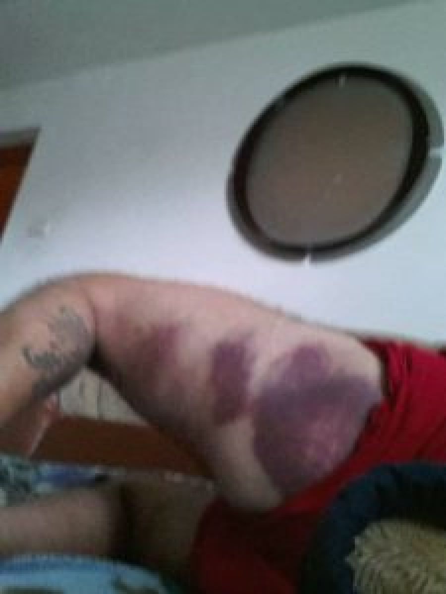 Vânătăile lăsate pe corpul tânărului sunt de-a dreptul șocante.