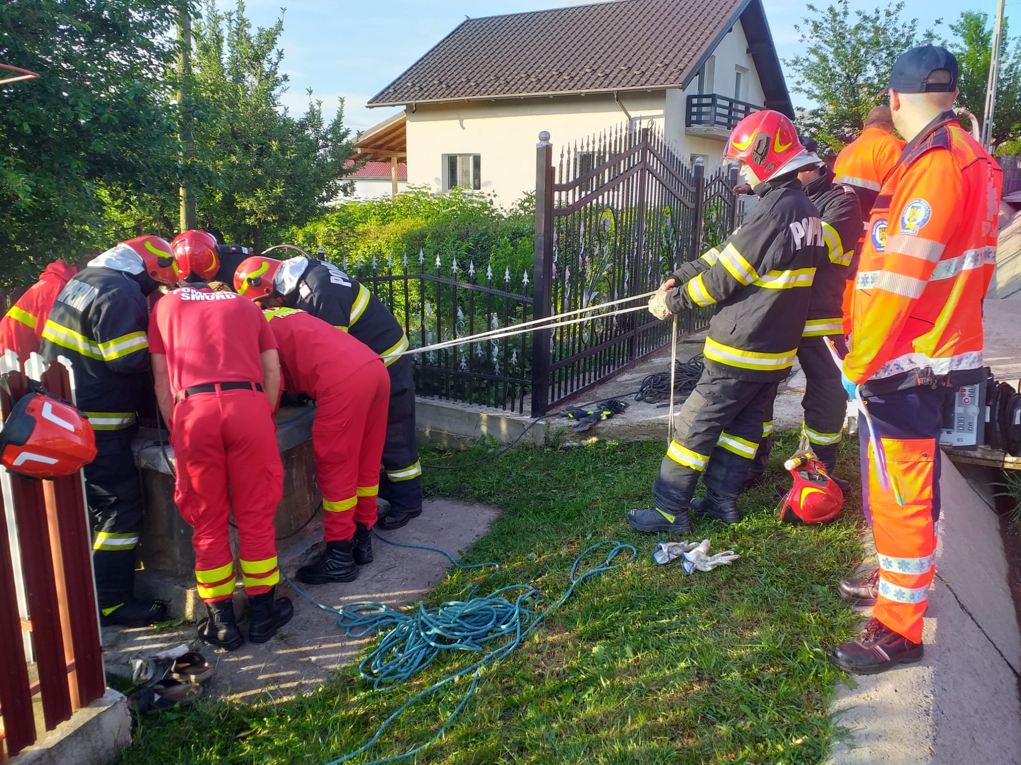 Unul dintre pompieri a coborât în fântână și, ajutat de colegi, a reușit să îl aducă la suprafață pe bărbat. Acesta era în apă până la brâu și era conștient.