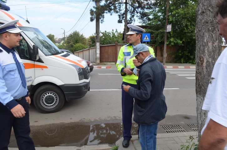 Autoturismul circula dintre intrarea în municipiu spre Bazar și l-a atins pe bărbatul care se pare că suferă de un grad de handicap la unul dintre șolduri. Pietonul a căzut pe carosabil, iar conducătorul auto a solicitat ajutorul medicilor de la Serviciul Județean de Ambulanță (SJA) Botoșani. Autosanitara a ajuns la locul accidentului la scurt timp și l-a preluat pe botoșănean. El a fost consultat de medicul Eduard Gurău, având mai multe excoriații la nivelul șoldului drept. Pacientul a refuzat să meargă însă la Unitatea de Primiri Urgențe pentru a fi supus unor investigații amănunțite. Au ajuns la locul accidentului și polițiștii din cadrul Biroului Rutier Botoșani care au efectuat cercetări vis a vis de evenimentul rutier. (G.E.)