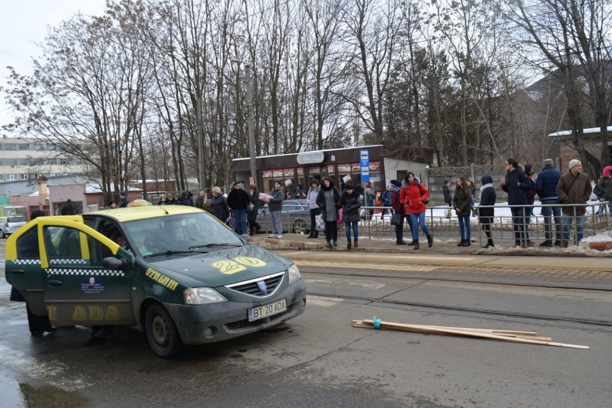 O pasageră din taxi este convinsă că respectivul bărbat, care avea şi nişte scânduri în mâini, s-ar fi dezechilibrat şi de aceea s-ar fi întors brusc.