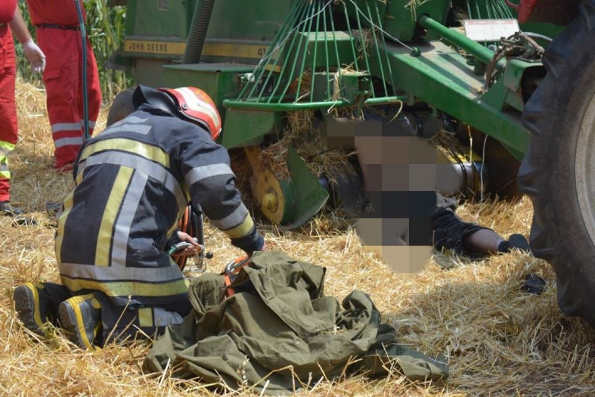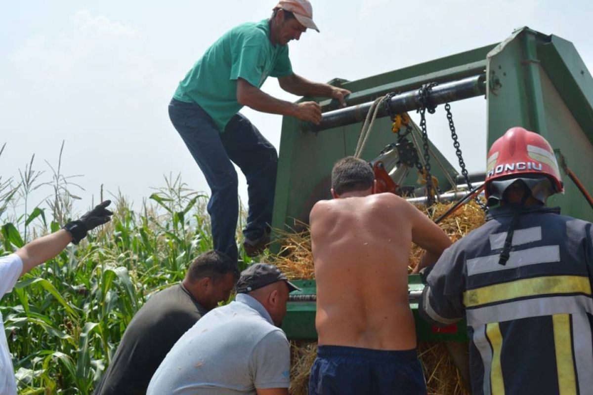 Ca atare, ajutați de săteni pompierii au degajat întâi balotiera de paie, după care cu sprijinul unui mecanic din comună sosit special la fața locului, au desfăcut câteva elemente și ajutați fiind și de aparatura de pe autospeciala de descarcerare au reușit să elibereze întâi brațul stâng și apoi pe cel drept. Corpul omului stătea mărturie sfârșitului groaznic pe care l-a avut, brațele fiind total deformate, trunchiul plin de tăieturi adânci, la față fiind practic de nerecunoscut.