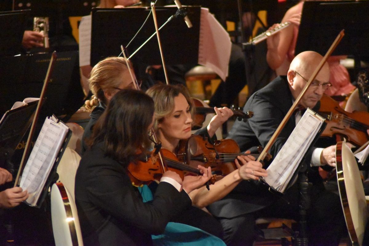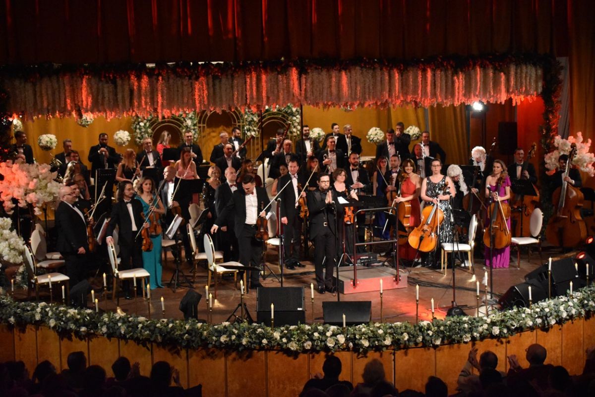 Inclusiv obișnuitele scaune negre ale orchestrei simfonice au fost înlocuite cu altele albe-aurii.
