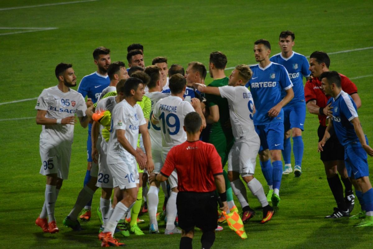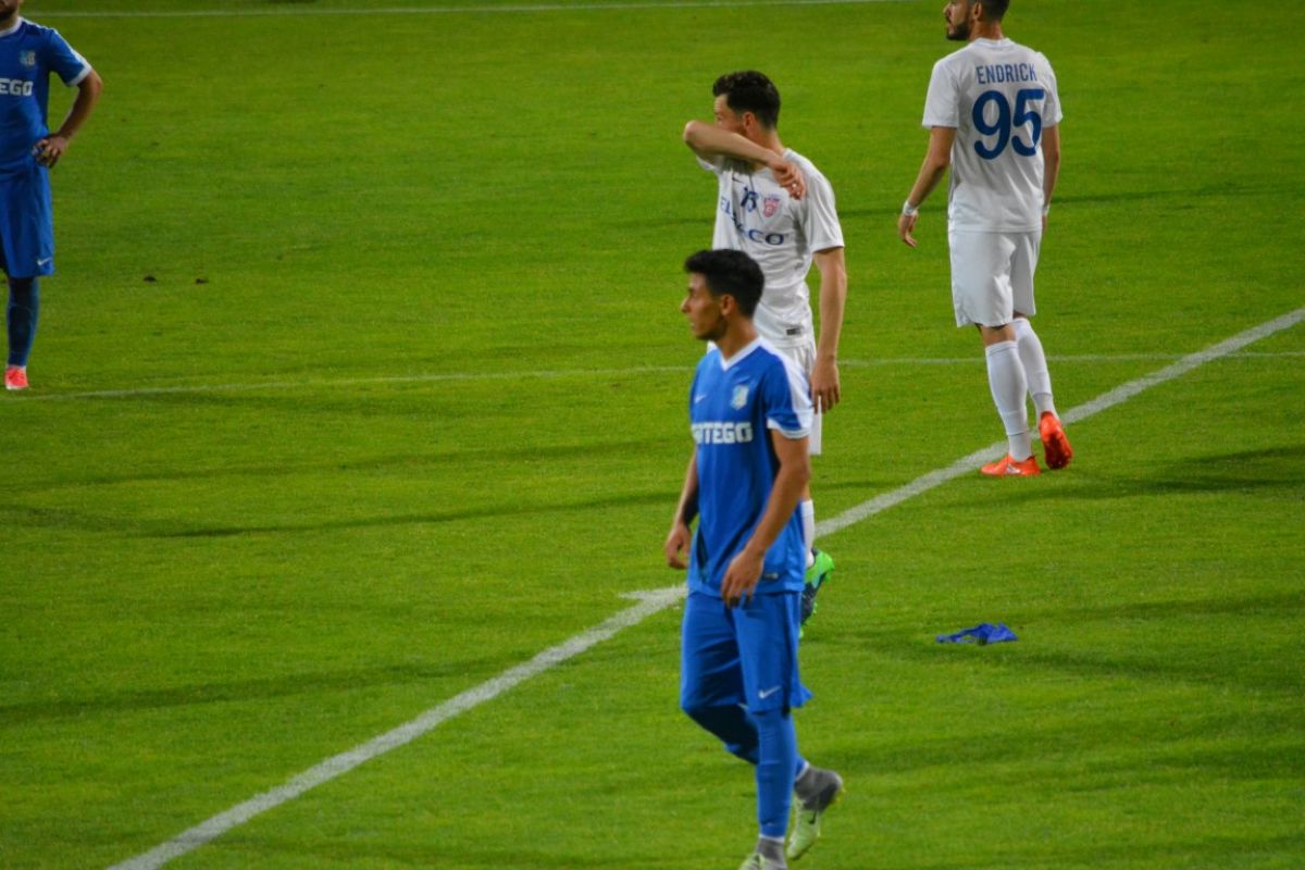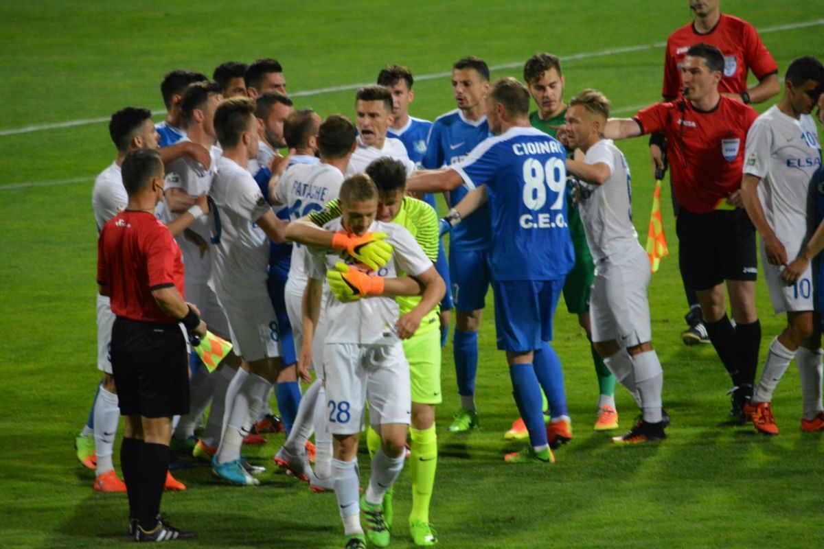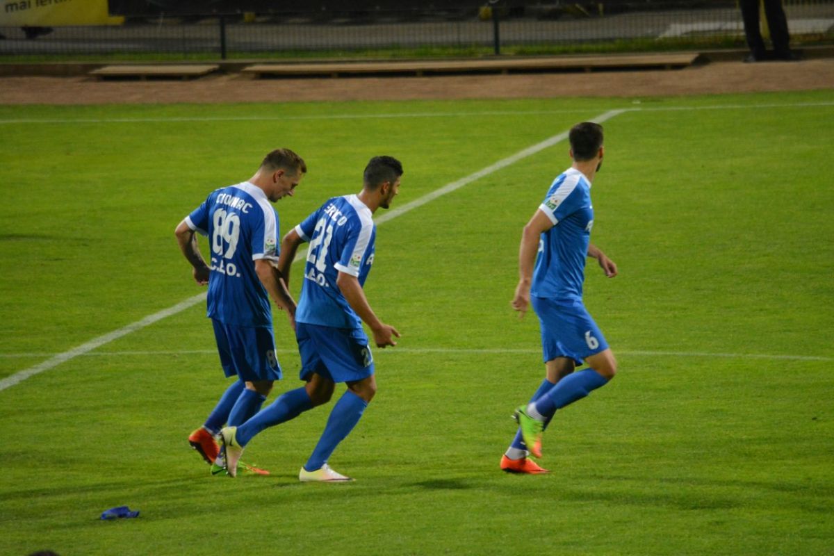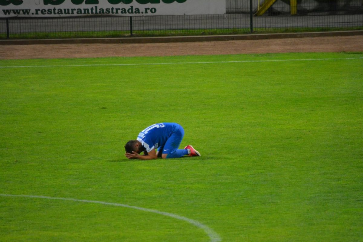 Gorjenii s-au prăbuşit la pământ după ce au primit gol, iar Flavius Stoican şi-a pus mâinile în cap.