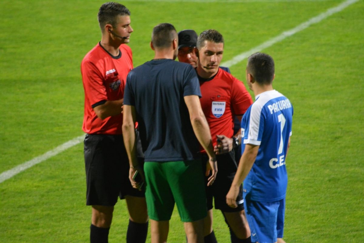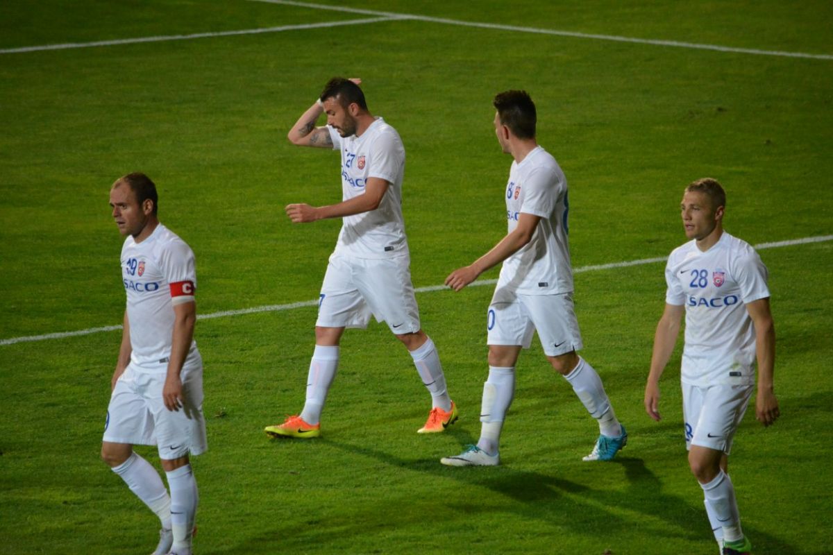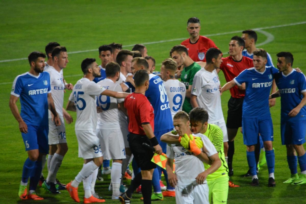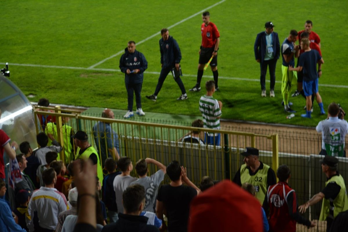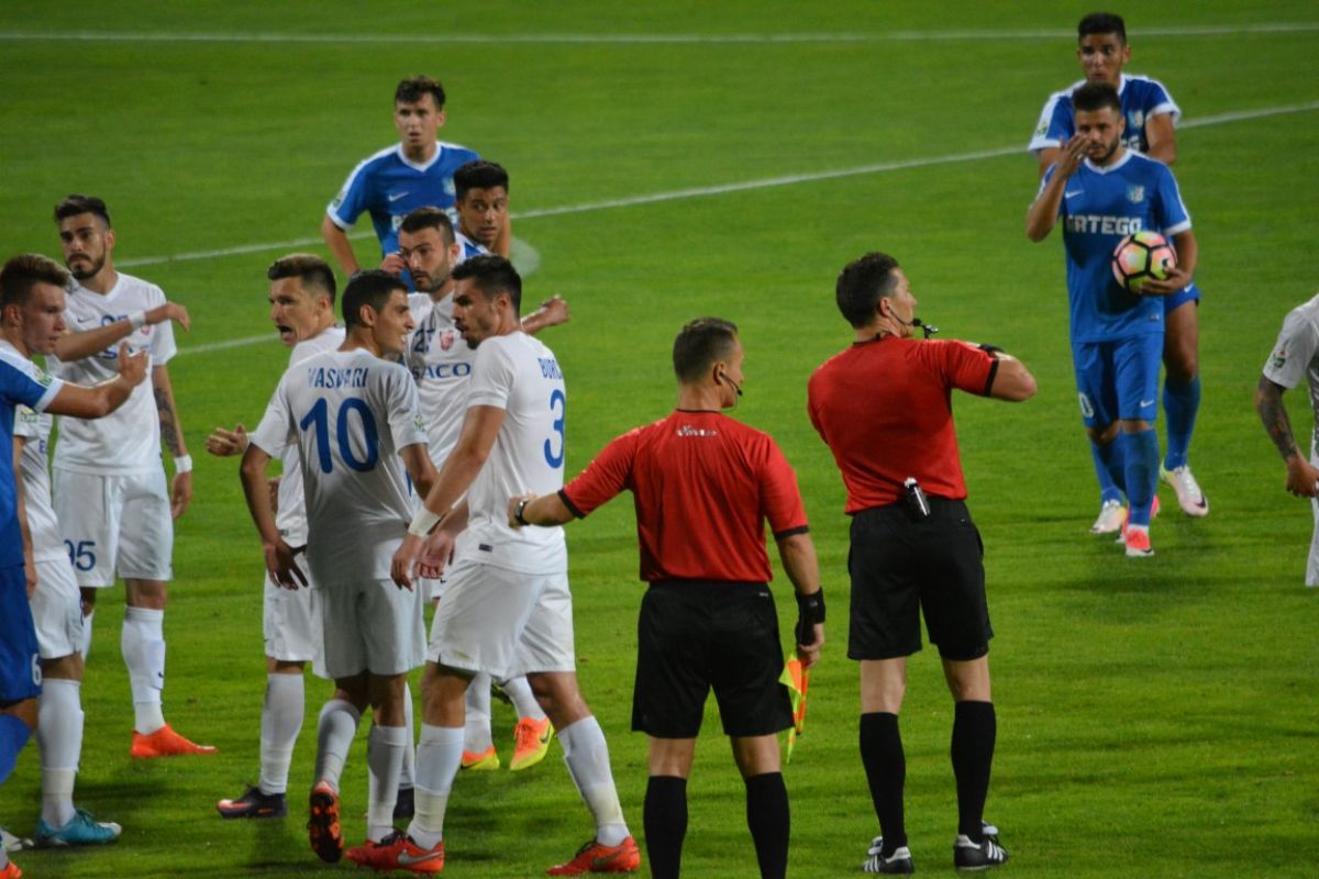 Gorjenii s-au prăbuşit la pământ după ce au primit gol, iar Flavius Stoican şi-a pus mâinile în cap.