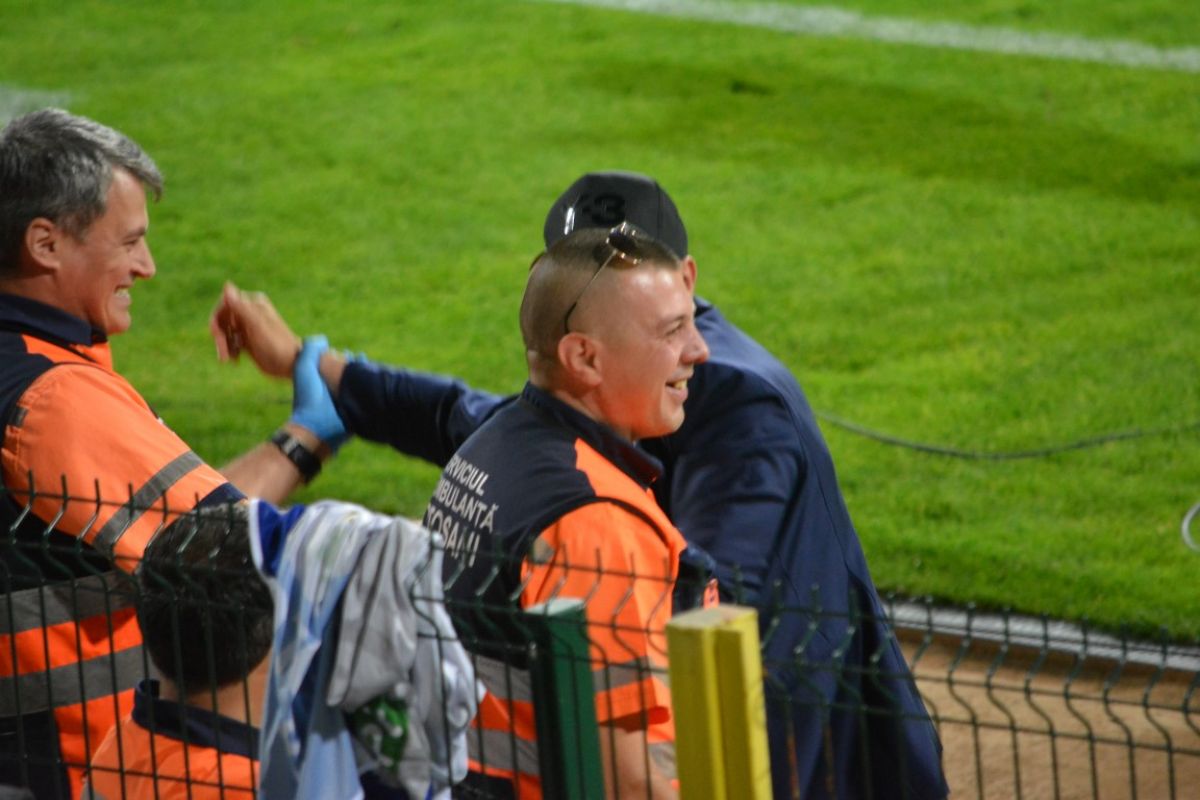 Preparatorul fizic al botoşănenilor, Ovidiu Chiribici, a ajuns şi el în tribune, de unde a făcut atmosferă.
