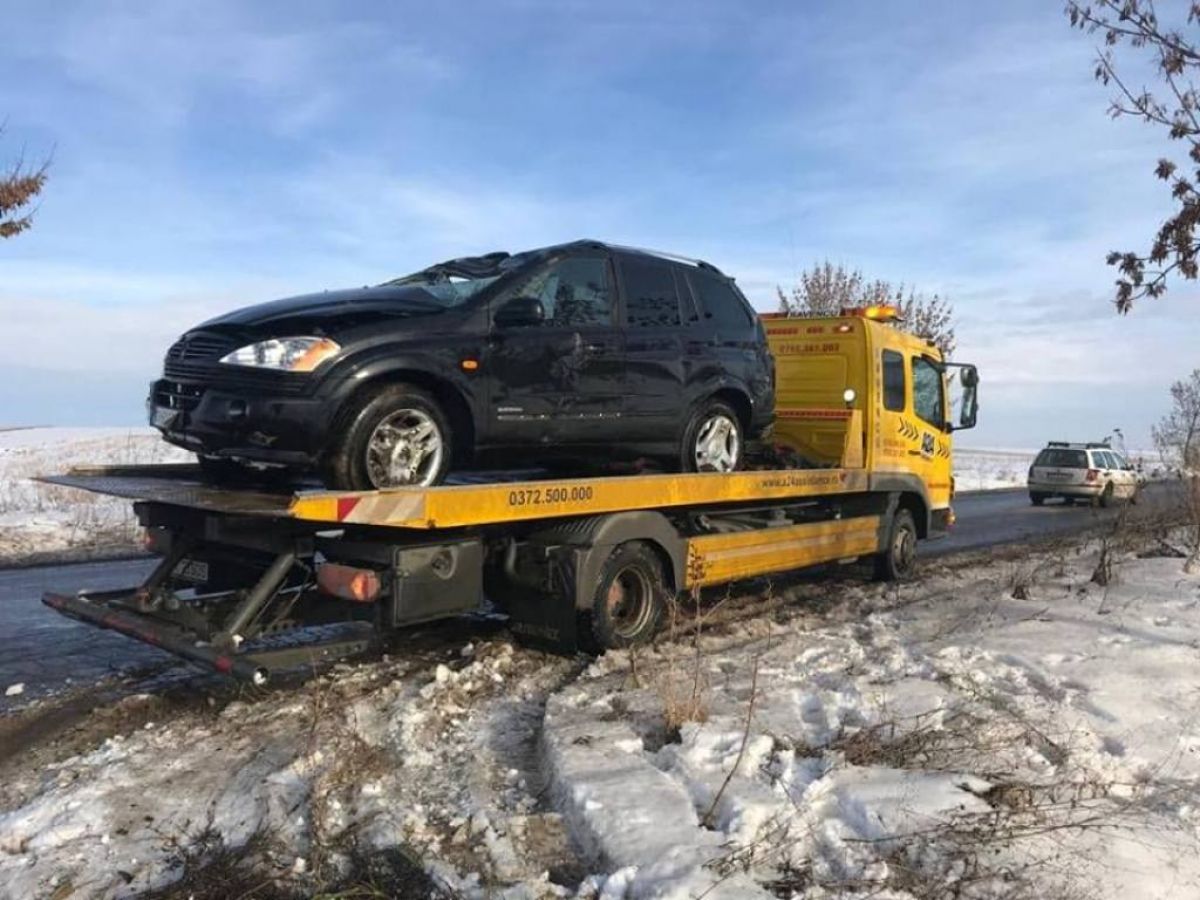 Cursa nu a durat însă prea mult timp fiindcă în localitatea menționată a pierdut controlul autoturismului de teren, un SsangYong, și s-a dat peste cap.