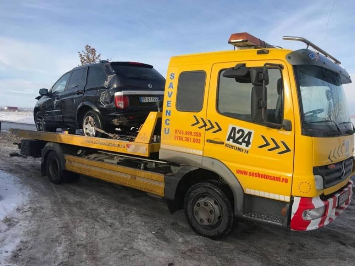 Aceasta se afla pe un câmp, la zeci de metri de șosea, fiind readusă pe carosabil de o autospecială de la SOS Botoșani.