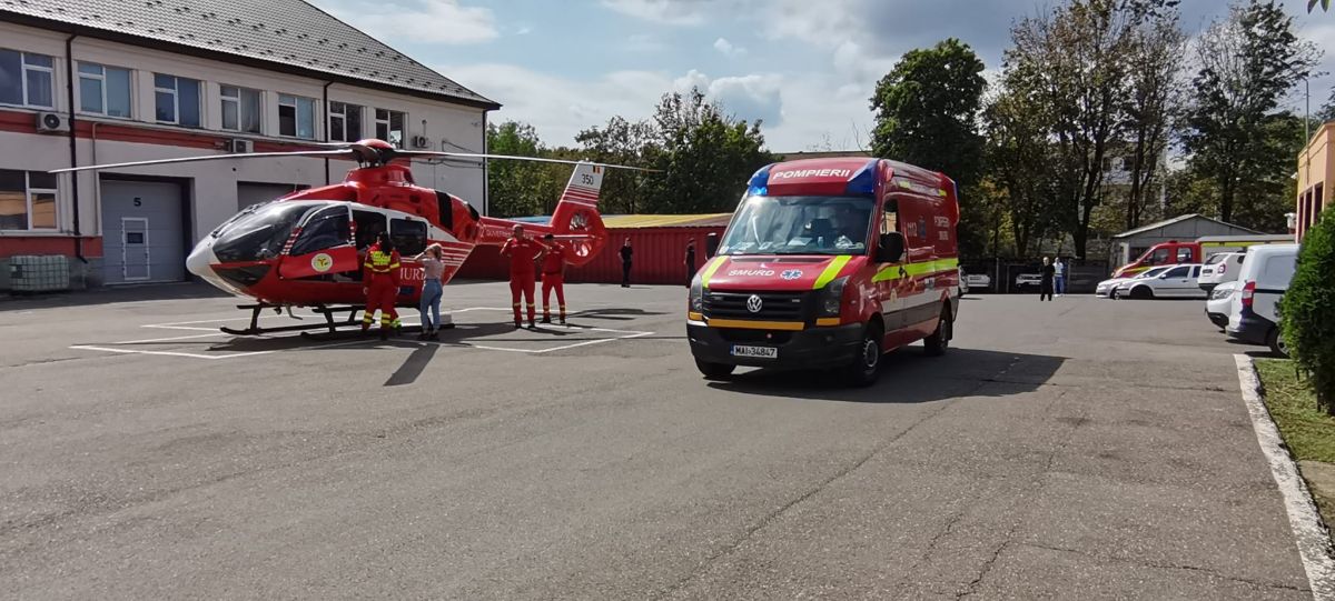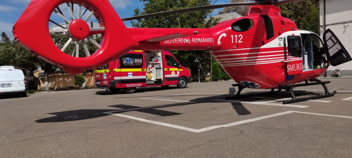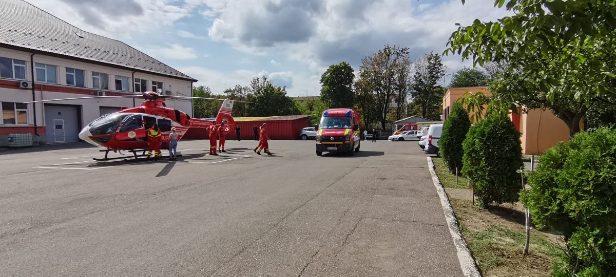 Din cauza stării grave, medicii au decis transferul de urgență al bebelușului. Un echipaj SMURD a aterizat pe stadionul din Dorohoi pentru a-l tranfera la Iași.