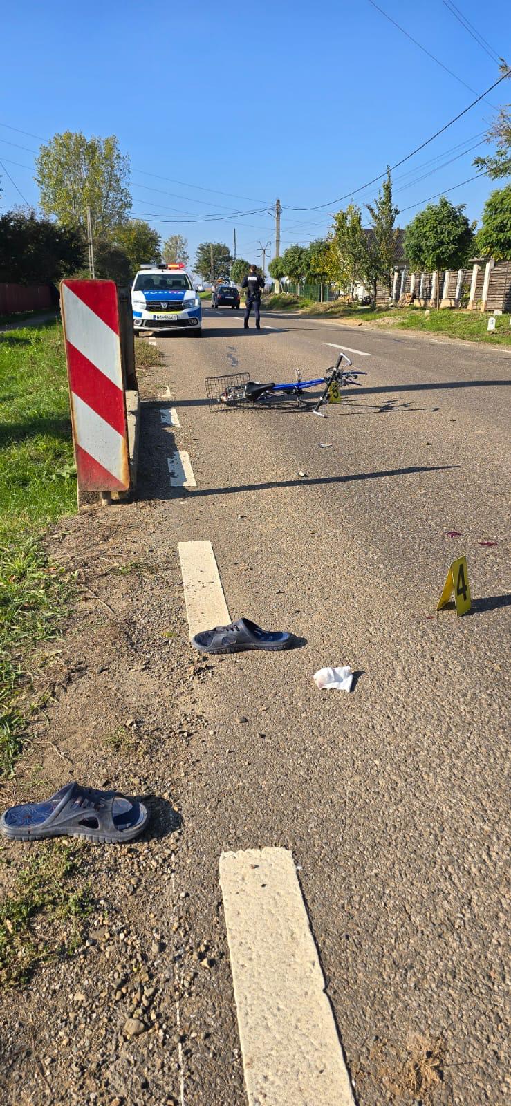 Din informații, se pare că biciclistul ar fi virat brusc la stânga, iar șoferul de 73 de ani nu a mai putut evita impactul și l-a lovit din plin, impactul fiind atât de puternic încât victima a fost aruncată pe asfalt.